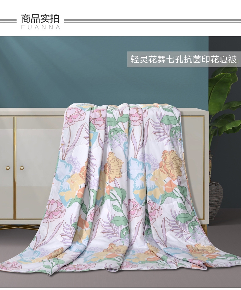 丝质细腻柔软,莹润有质感;沁凉的磨毛印花面料,手接触肌肤细腻舒适;均匀平整,圆角设计,精致的绗缝工艺