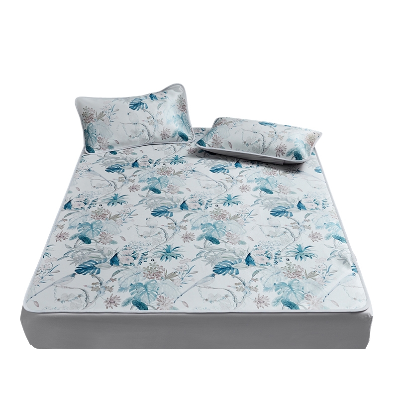 淡雅沉静,如同躺进清风小舟,自带凉意;采用水洗磨毛印花面料,经过7000次摩擦检测;长久使用几乎不起球,经久耐用;精选长白山野生榨蚕丝,弹性好,丝容积空隙大;比普通蚕丝呼吸感更强,透气吸湿