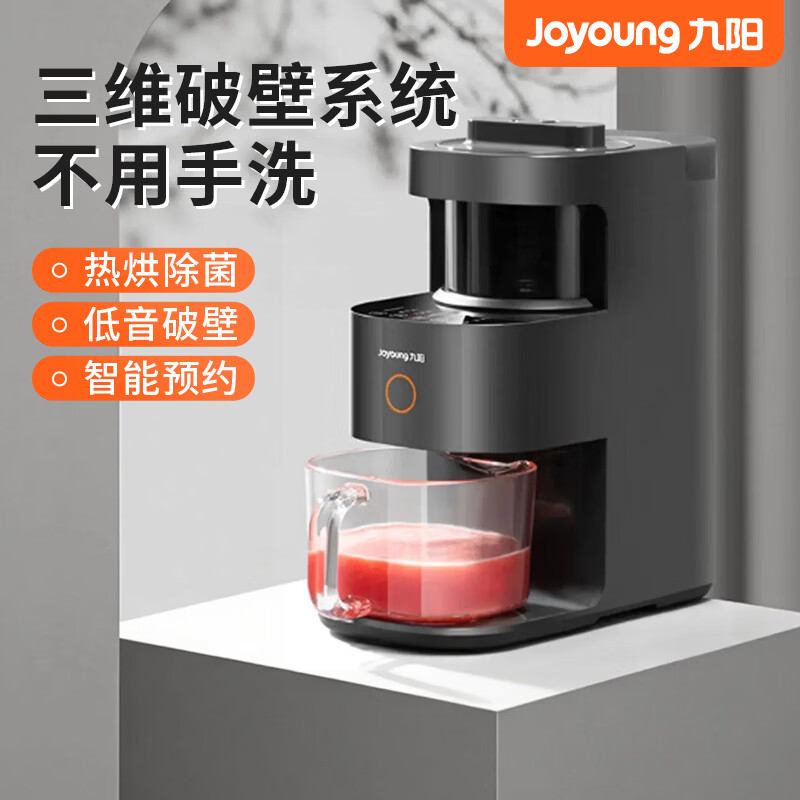 不用手洗静音智能破壁机;;实时预约、破壁无渣;;10分钟快速制浆,防溢熬煮;;热烘除菌 除菌率99%;;三维冲洗,高温蒸洗;