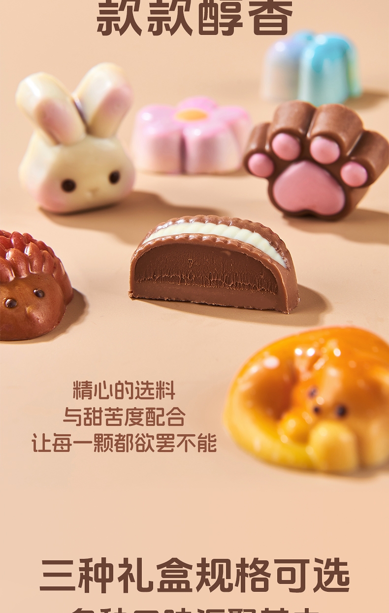 纯可可脂巧克力;沿用欧洲有古法制作;优选进口原料
