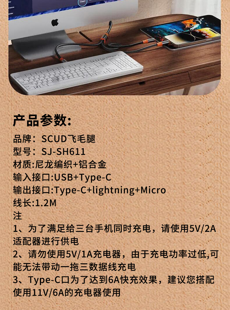 飞毛腿 充电线三合一数据线SJ-SH611