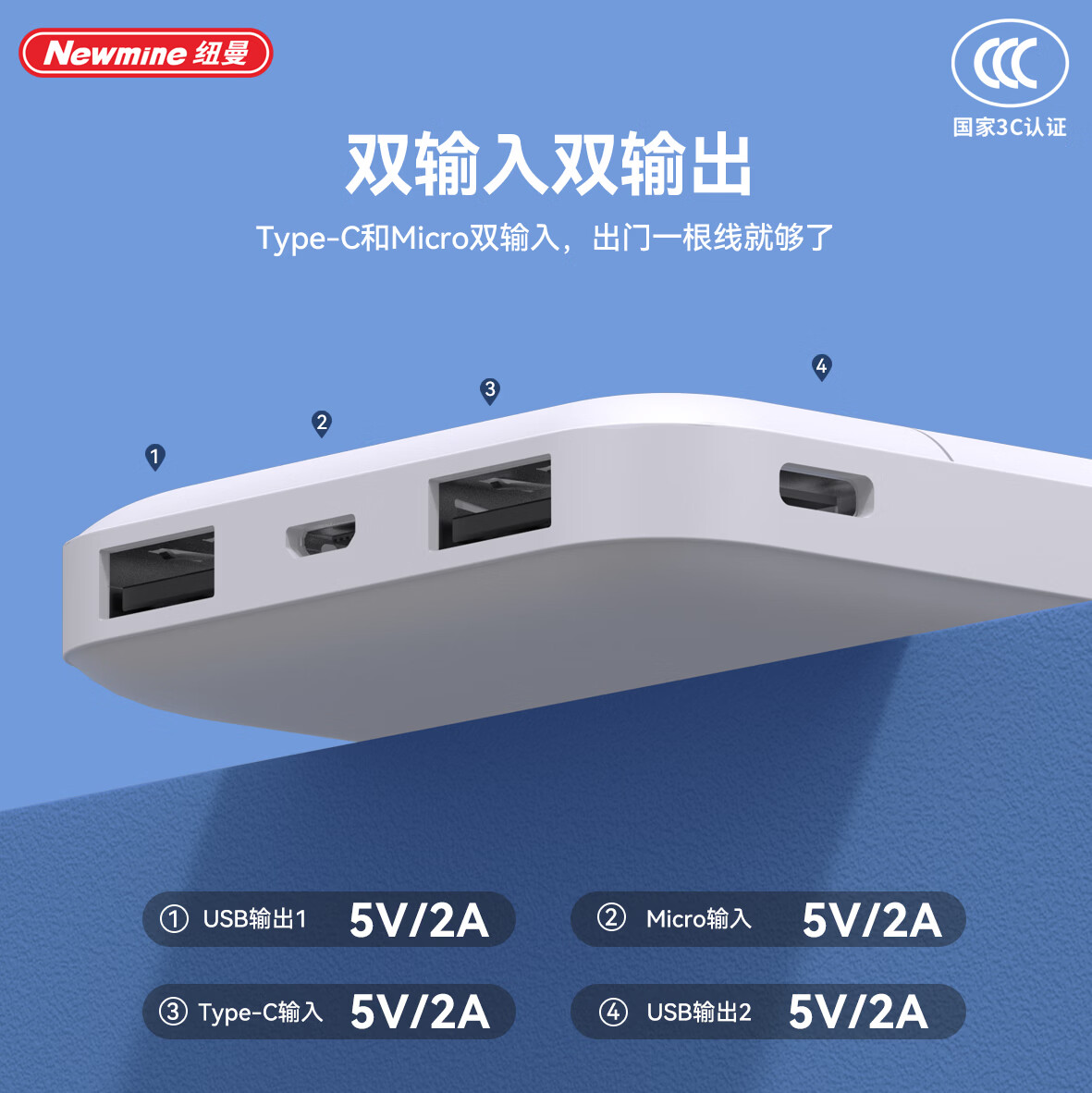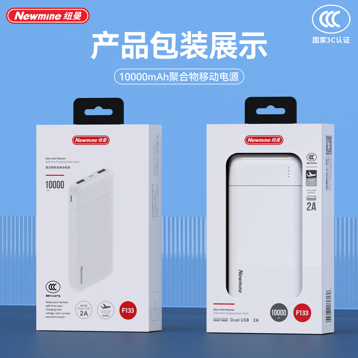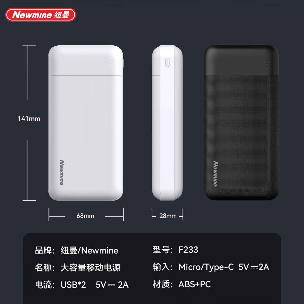 纽曼 轻薄小巧充电宝双USB输出F133