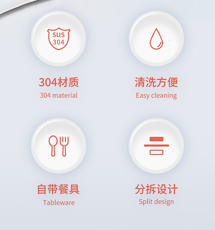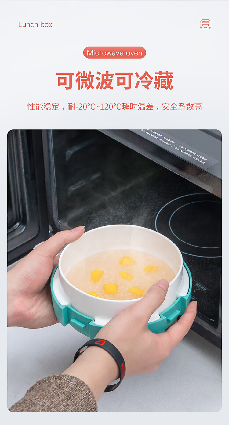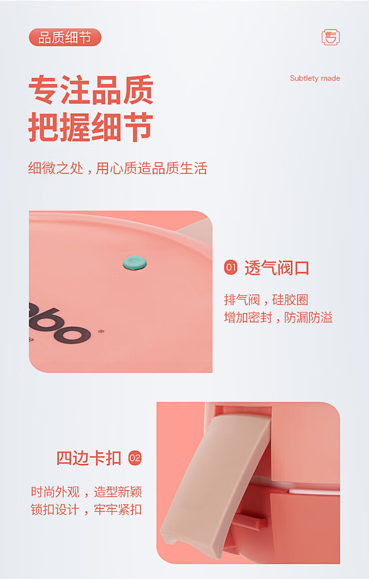 时尚外观,造型新颖,四重锁扣设计,牢牢紧扣;内置排气阀,轻松解压与开启;可放入微波炉中加热