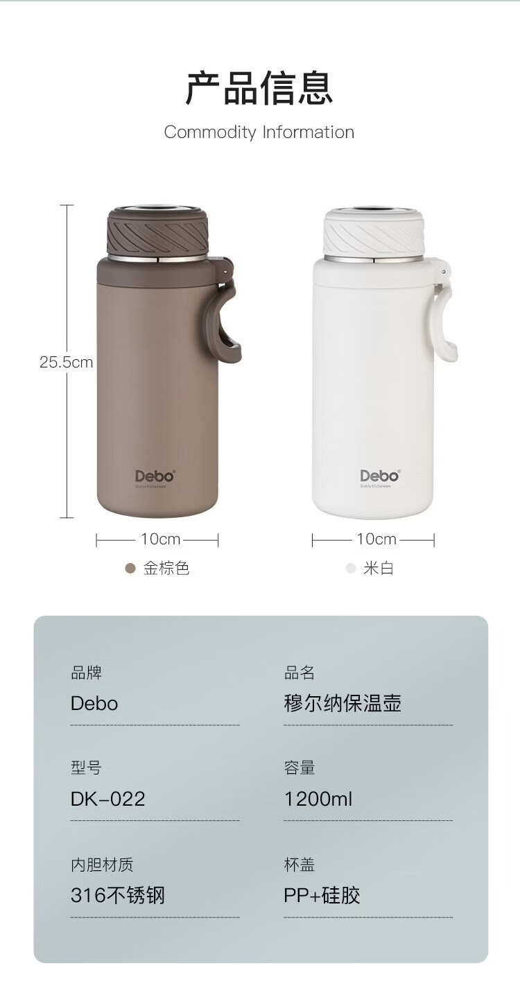 德铂 穆尔纳316不锈钢真空保温壶DK-022