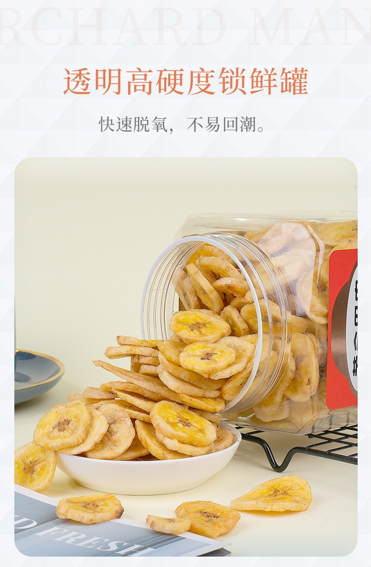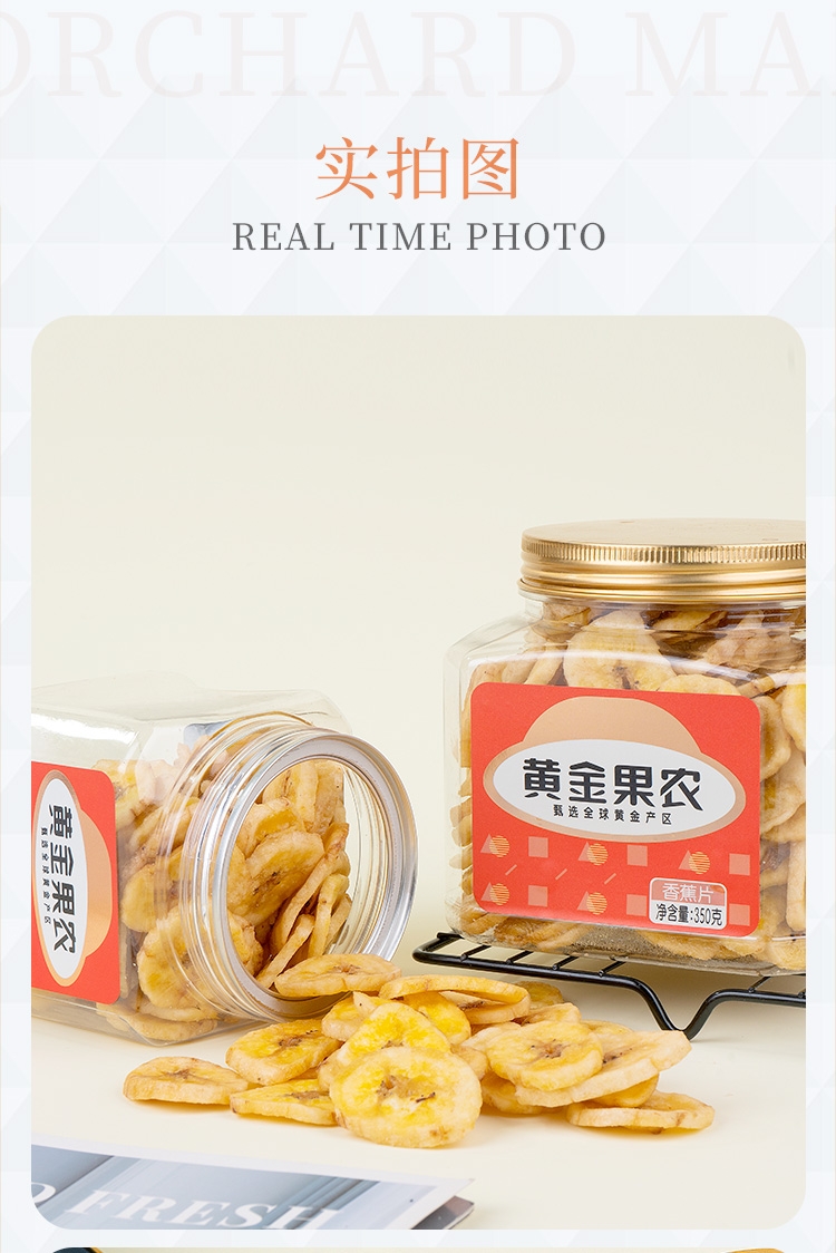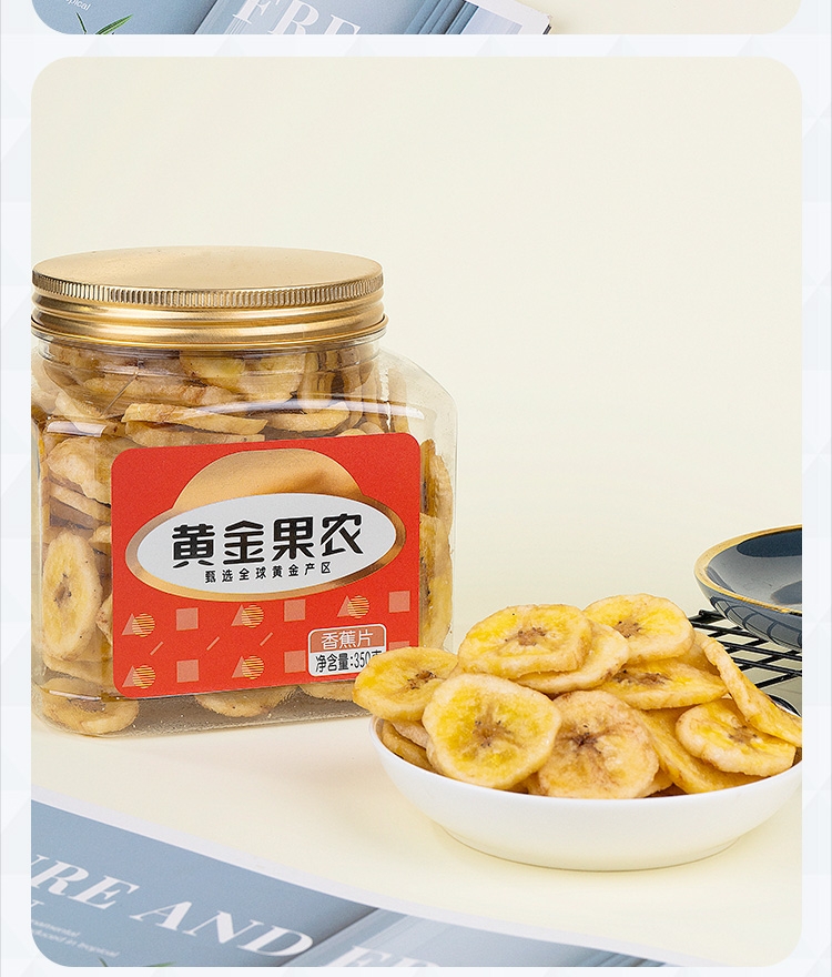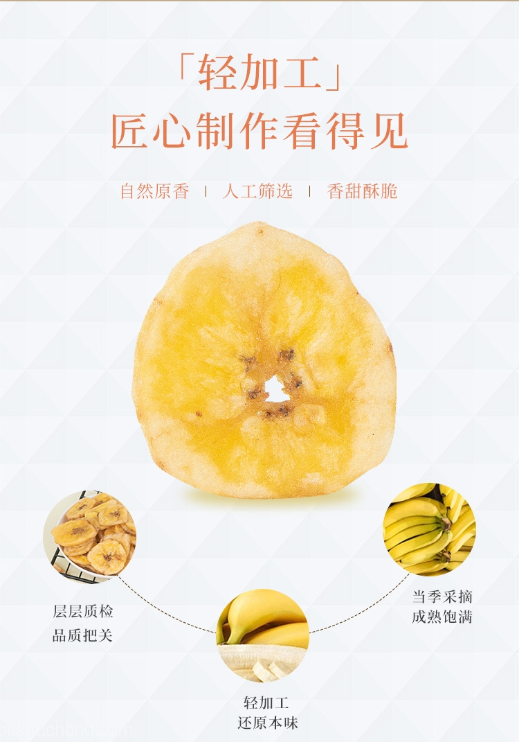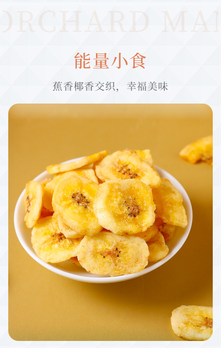 优质香蕉原产地当季直采;鲜切工艺,成就约1.2cm薄脆;创新烘焙工艺,香脆可口
