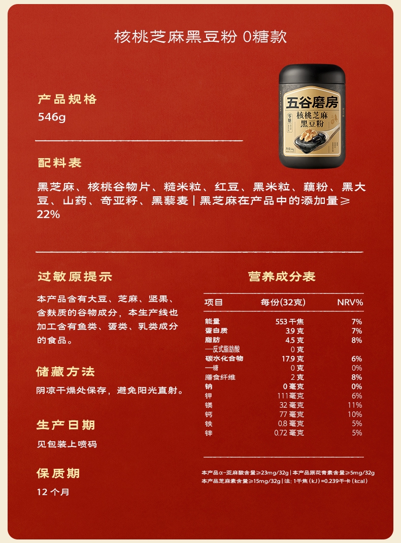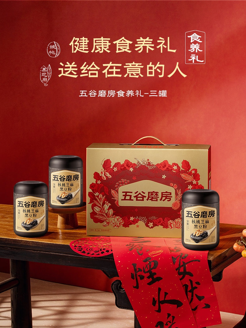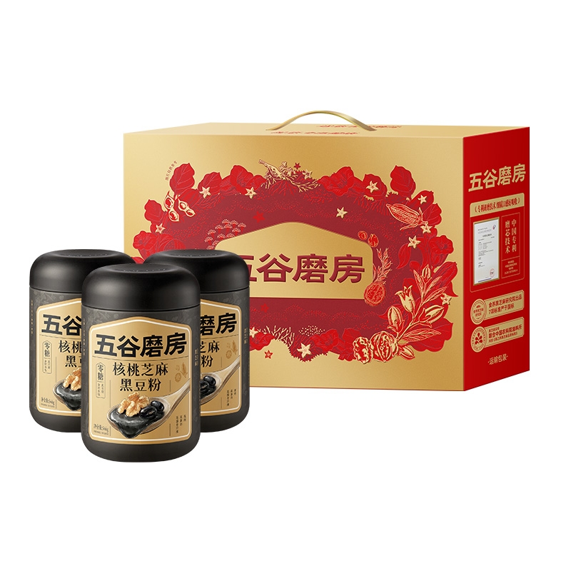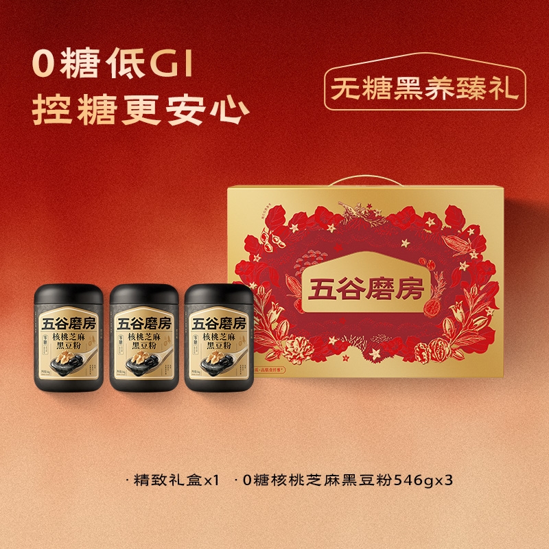 配置清单:五谷磨房-陶瓷杯-无糖款礼盒1638g(无糖款黑粉546g×3+陶瓷杯)