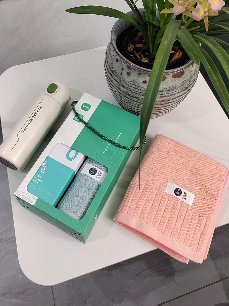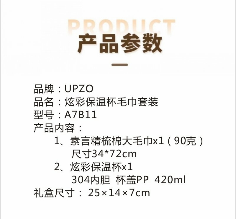 保温杯420ML 内胆304 杯盖PP ;精梳棉毛巾 90克每条 靓丽;礼盒设计简约 可手提 两色可选