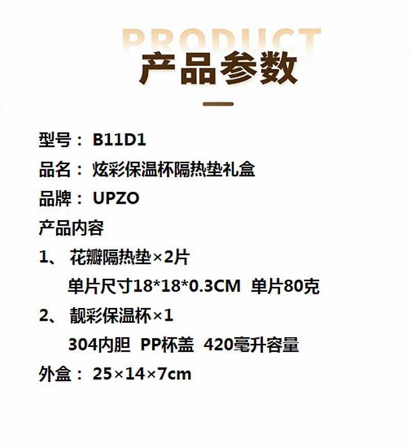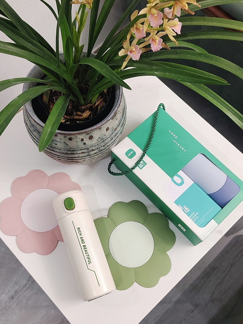 保温杯420ML 内胆304 杯盖PP;花瓣隔热垫设计靓丽 产品优质;礼盒设计简约 可手提 两色可选
