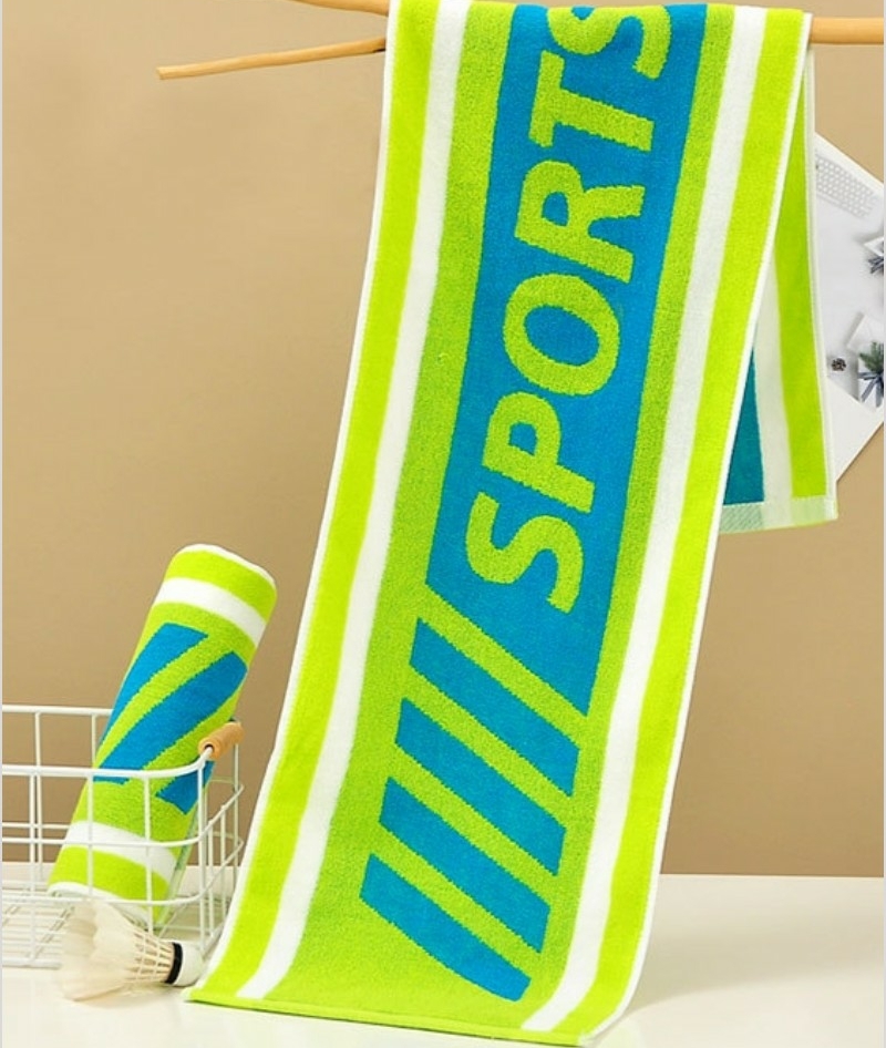 纯棉提花运动巾:颜色随机 105克 25*110CM 精梳棉色织提花工艺