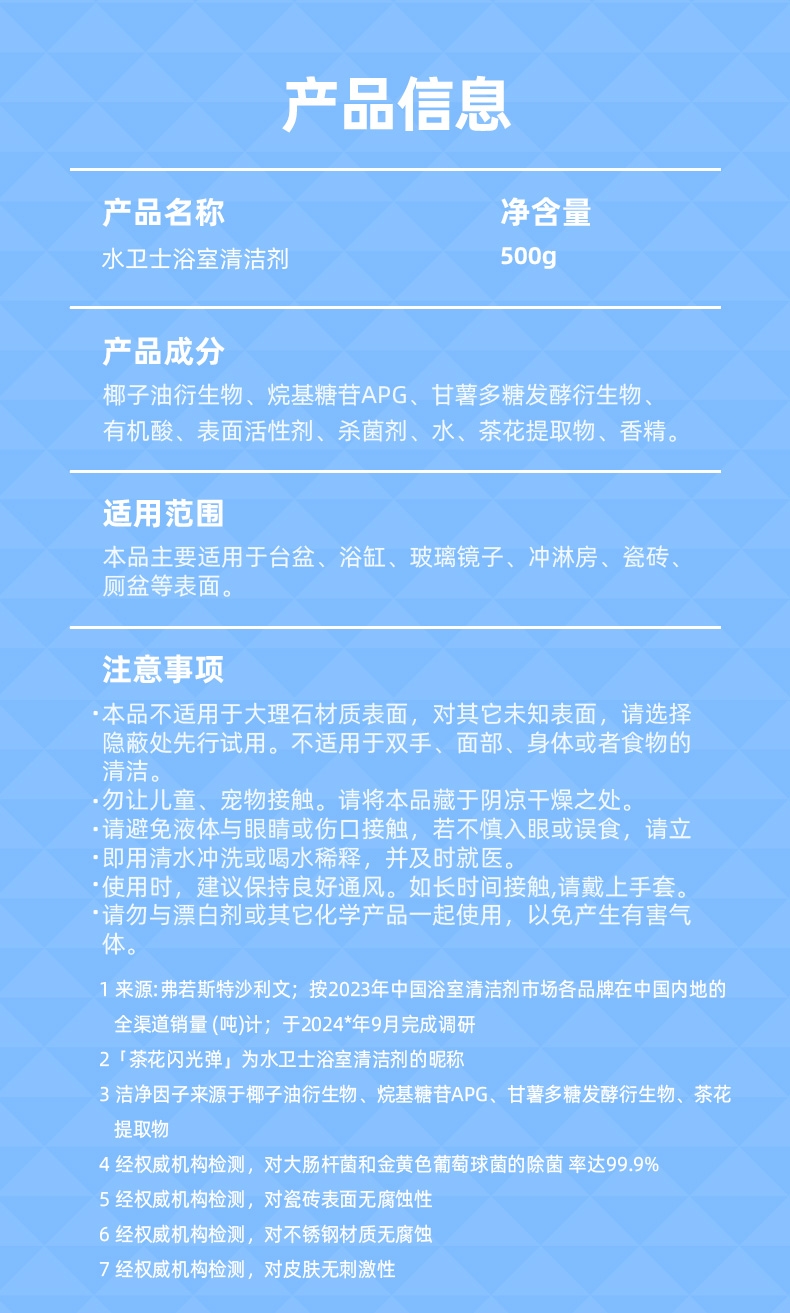 轻松去除顽固污垢,不伤不锈钢认证;家具清洁,一喷一擦即洁净,无需过水;快速溶解水垢、皂垢、污渍,除菌率99.9%