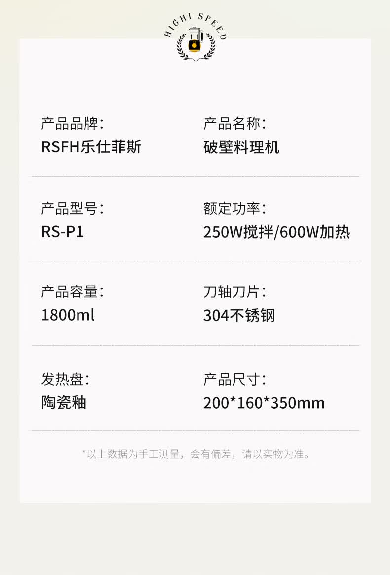 乐仕菲斯 破壁料理机1.8LRS-P1