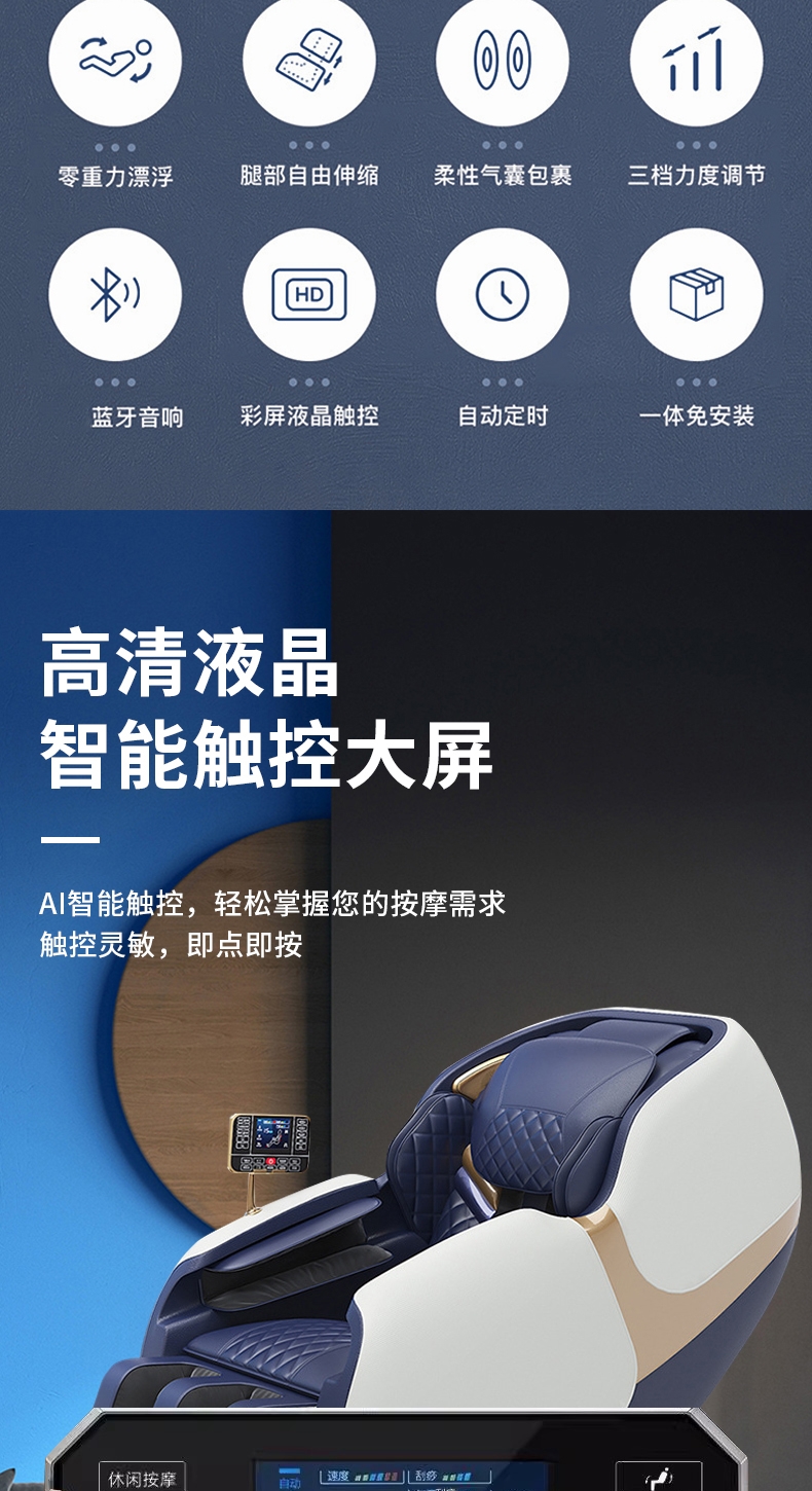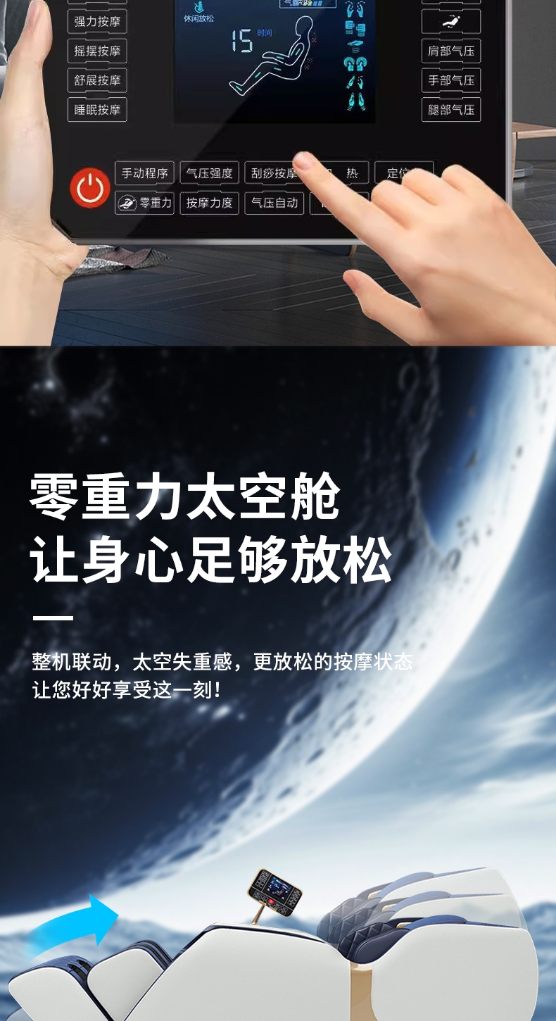 语音控制,零重力;全身按摩;按摩程序 3套