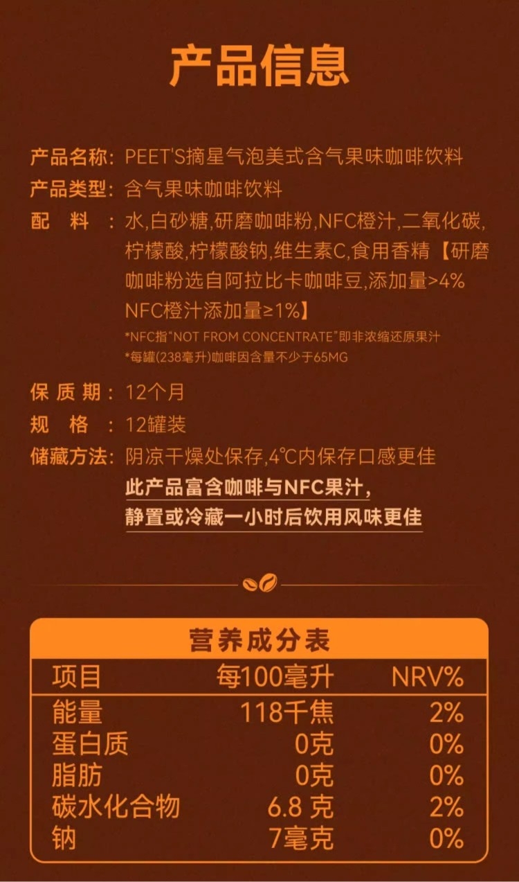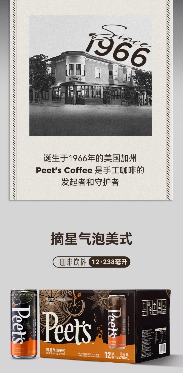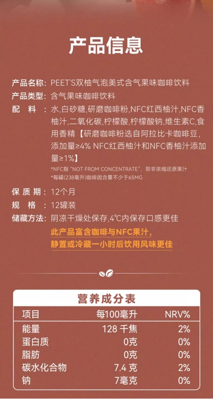 Peet’s Coffee 双柚气泡美式238ml*12罐PYSY238ML12