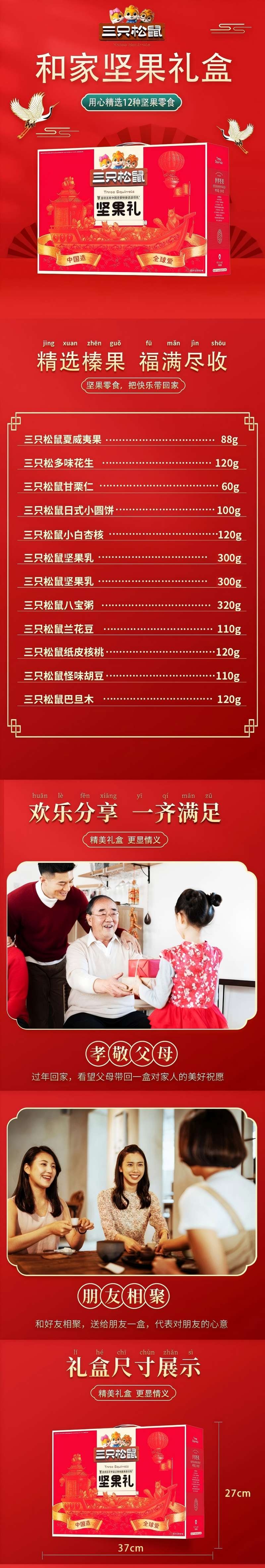 配置清单:三只松鼠-巴旦木120g 三只松鼠-小白杏120g 三只松鼠-纸皮核桃120g 三只松鼠-夏威夷果88g 三只松鼠-甘栗仁60g 三只松鼠-多味花生120g 三只松鼠-怪味胡豆110g 三只松鼠-兰花豆110g 三只松鼠-日式小圆饼100g 三只松鼠-八宝粥320g 三只松鼠-坚果乳300g 三只松鼠-坚果乳300g