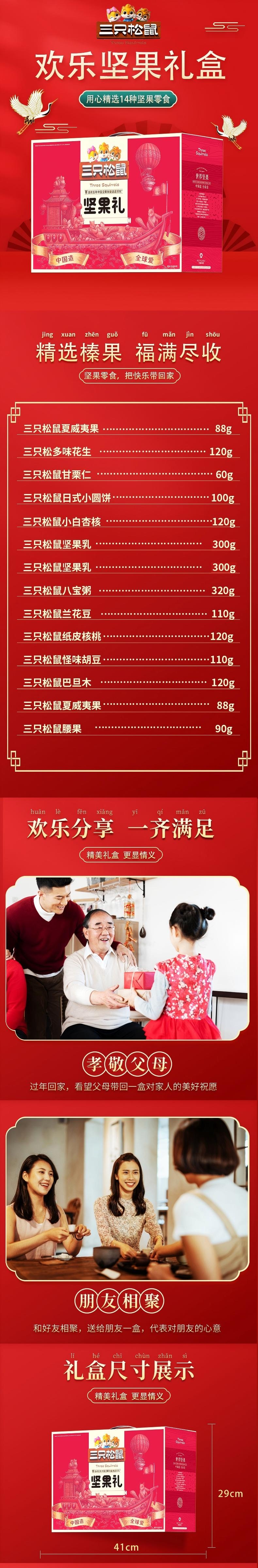 配置清单:三只松鼠-夏威夷果88g 三只松鼠-夏威夷果88g 三只松鼠-巴旦木120g 三只松鼠-腰果90g 三只松鼠-小白杏120g 三只松鼠-纸皮核桃120g 三只松鼠-甘栗仁60g 三只松鼠-多味花生120g 三只松鼠-怪味胡豆110g 三只松鼠-兰花豆110g 三只松鼠-日式小圆饼100g 三只松鼠-八宝粥320g 三只松鼠-坚果乳300g 三只松鼠-坚果乳300g