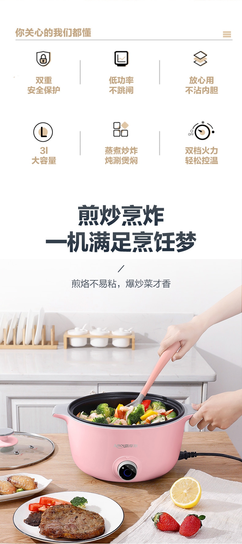 3L大容量;煎炒焖炸 一锅搞定;400天包换 品质有保障