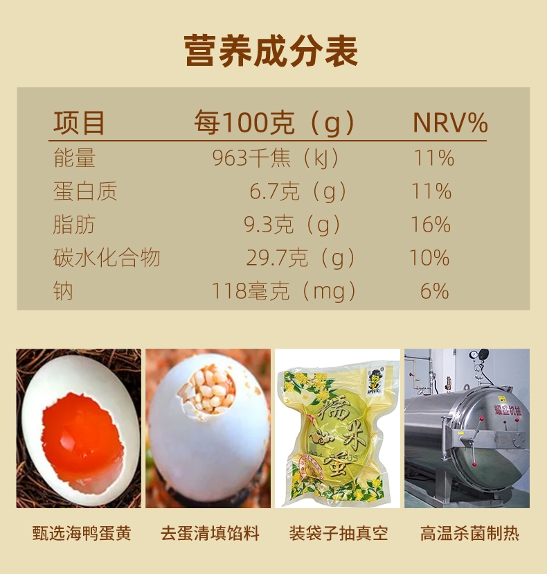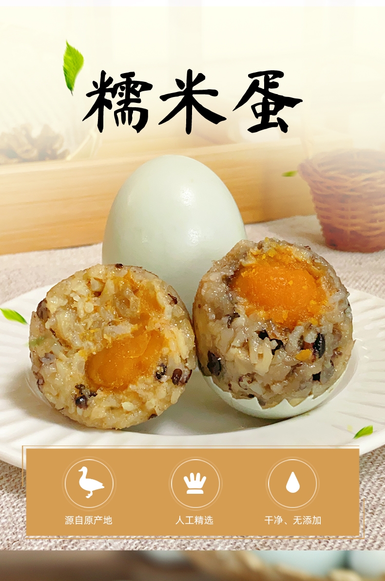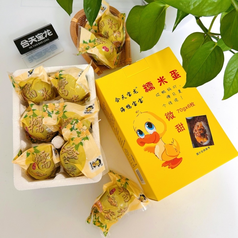 将传统咸鸭蛋与软糯糯米结合,给人带来新奇的味觉体验;经过高温蒸制的熟糯米鸭蛋,开袋剥壳后可直接食用;