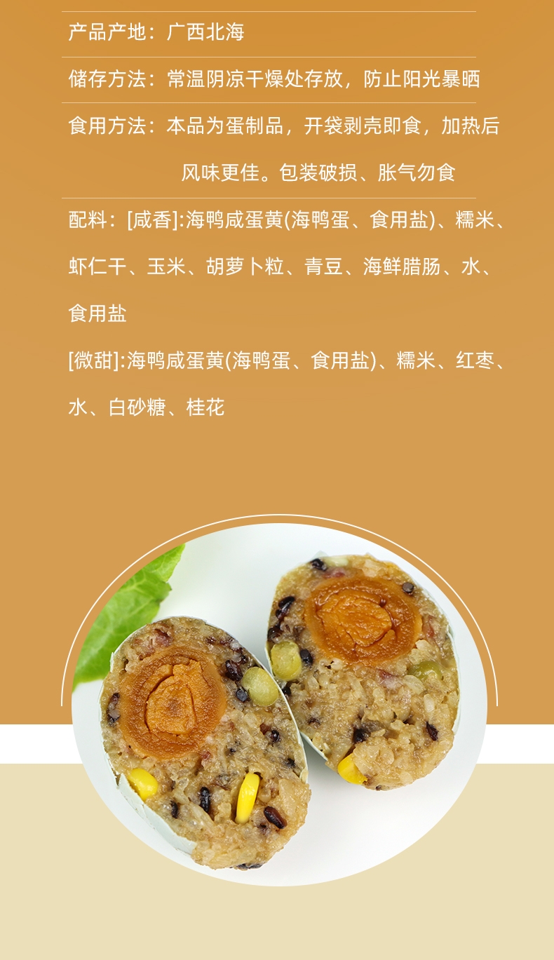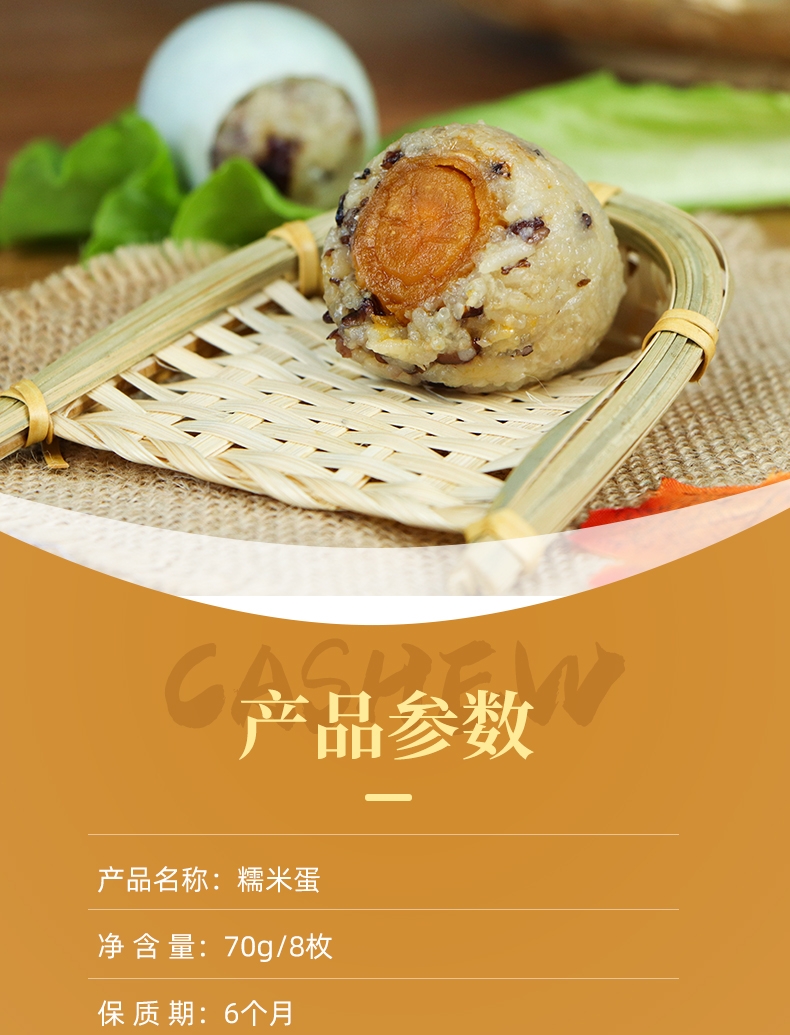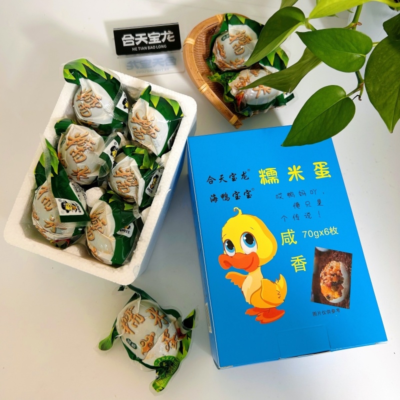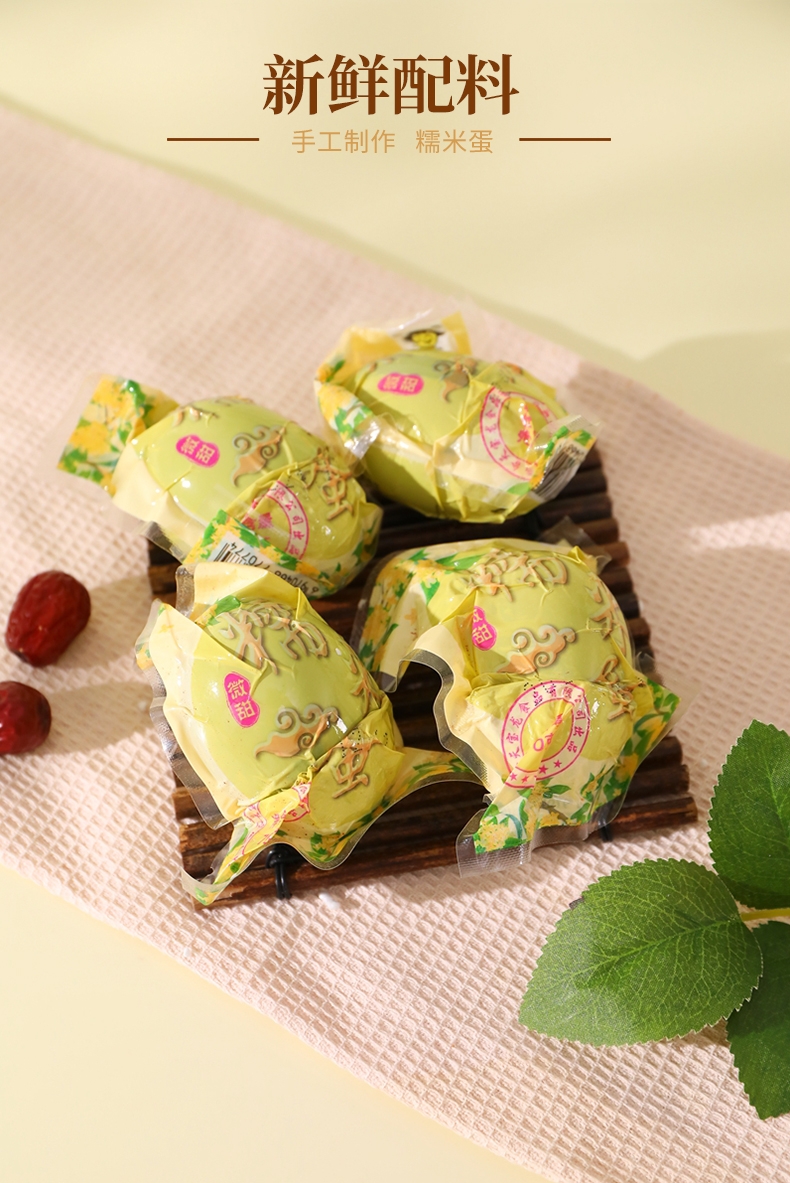 将传统咸鸭蛋与软糯糯米结合,给人带来新奇的味觉体验;经过高温蒸制的熟糯米鸭蛋,开袋剥壳后可直接食用;
