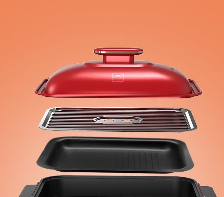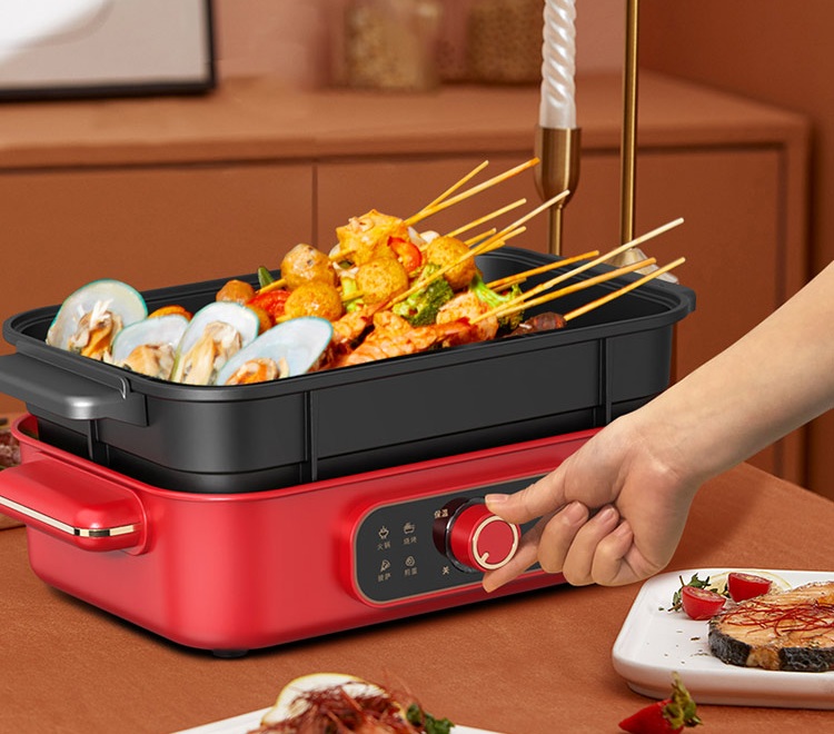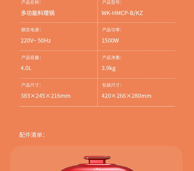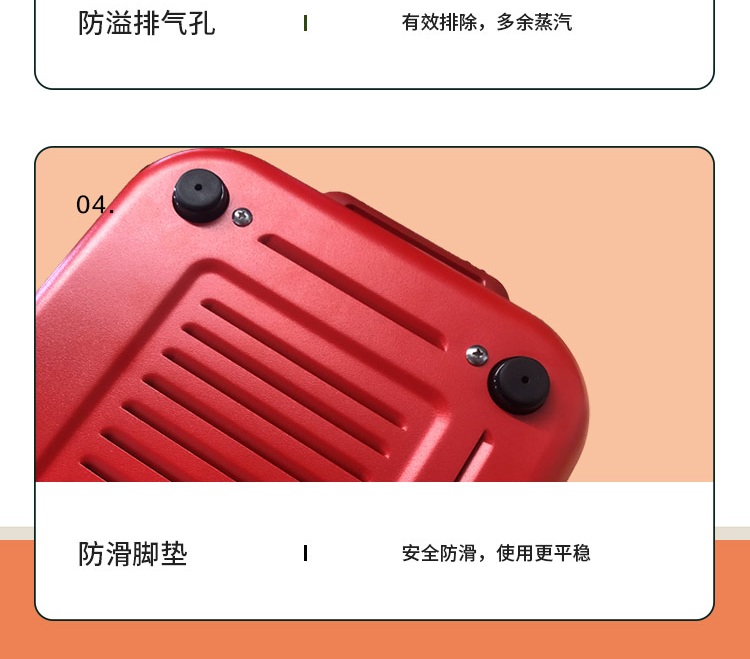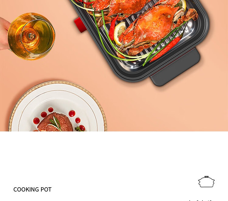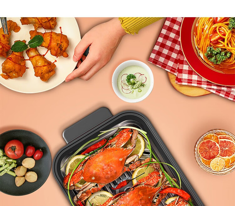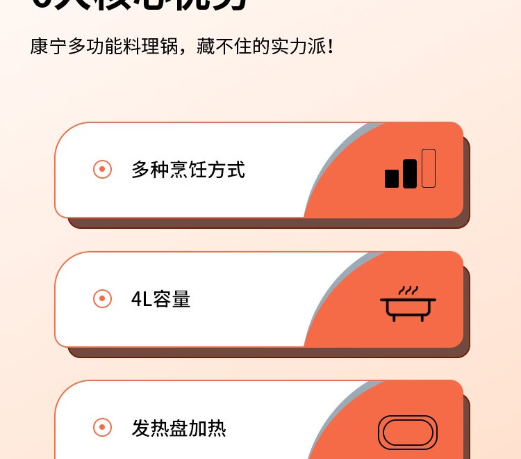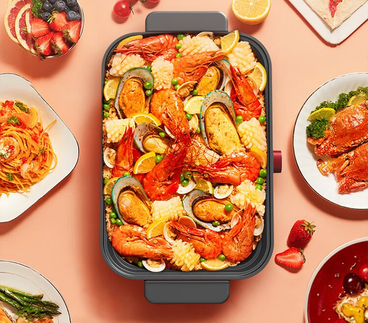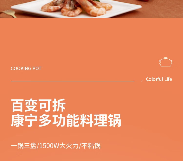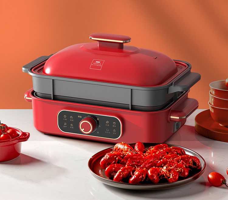快速加热 , 一锅多用,深煮锅,蒸架等;五档温控,控温更方便;不粘涂层,轻油少烟,防烫手柄;发热盘采用铝压铸,热效率高,更显美观