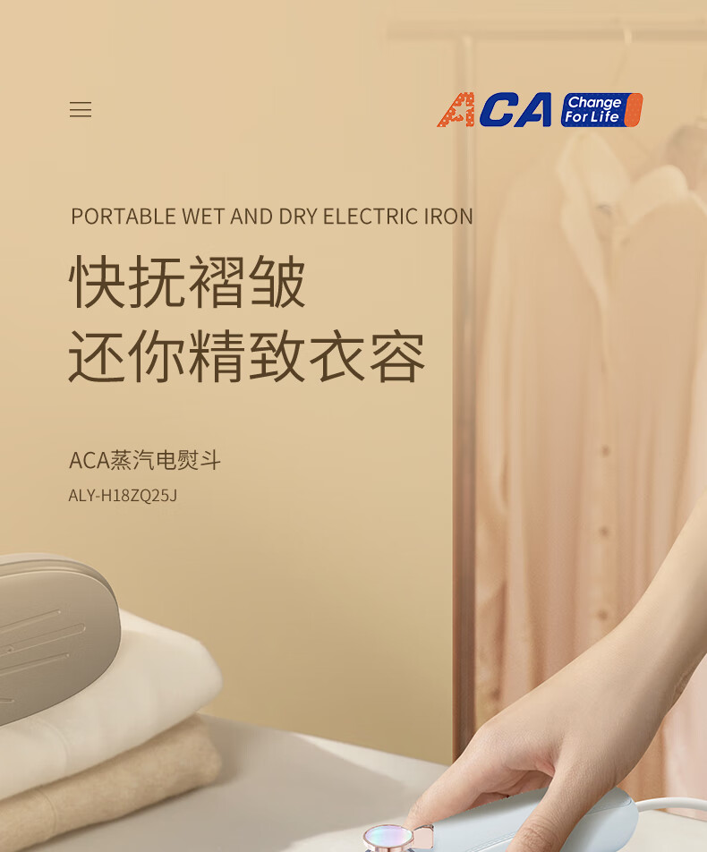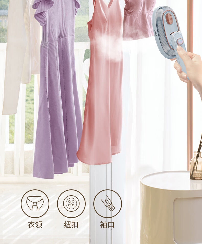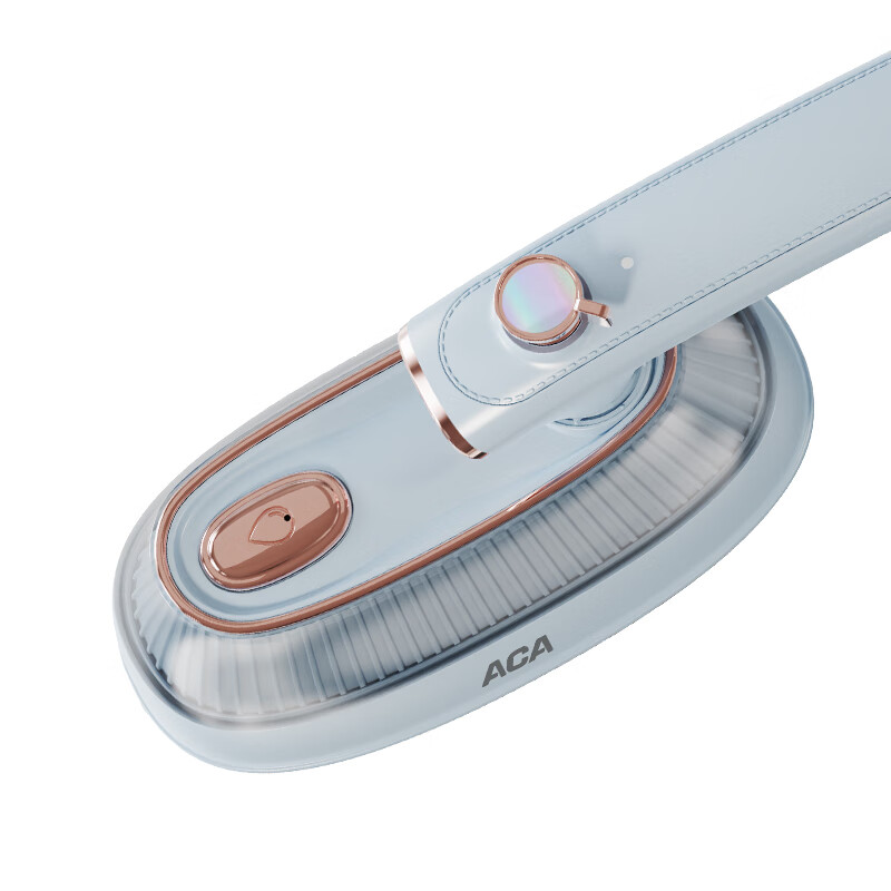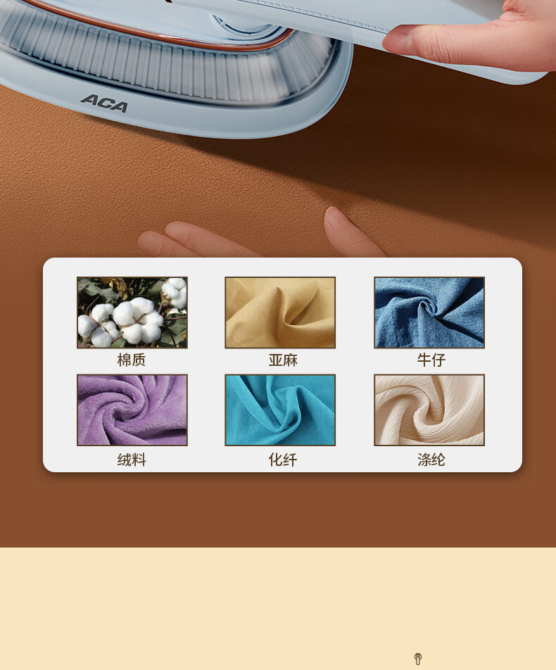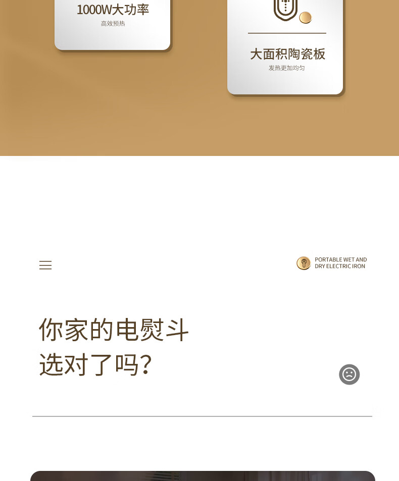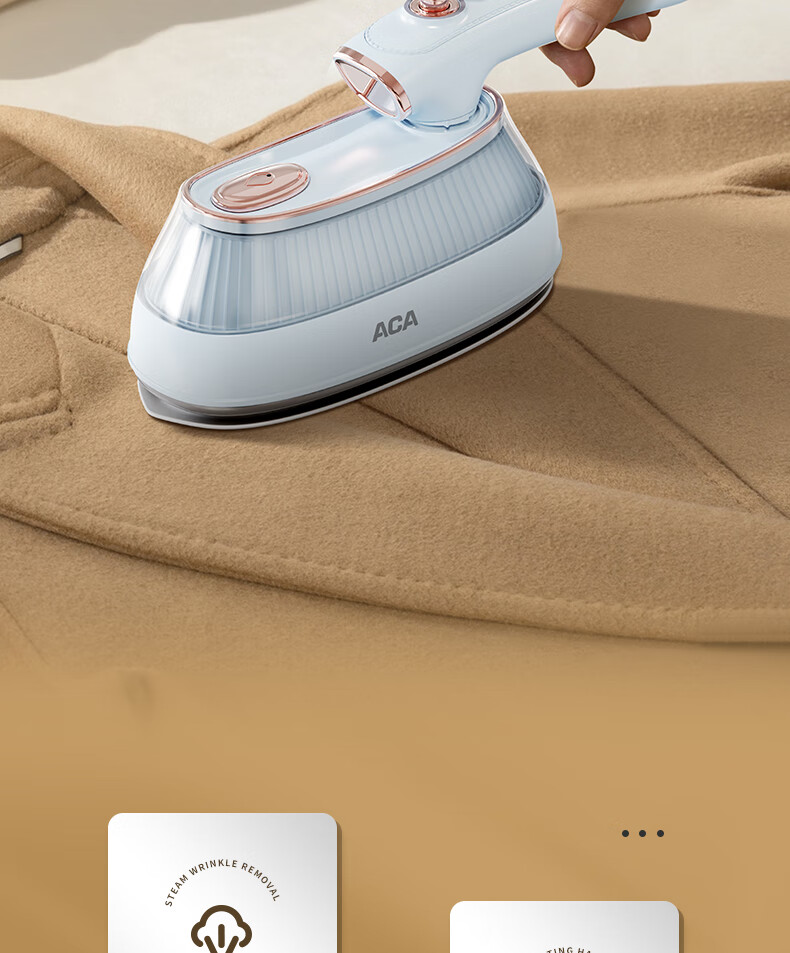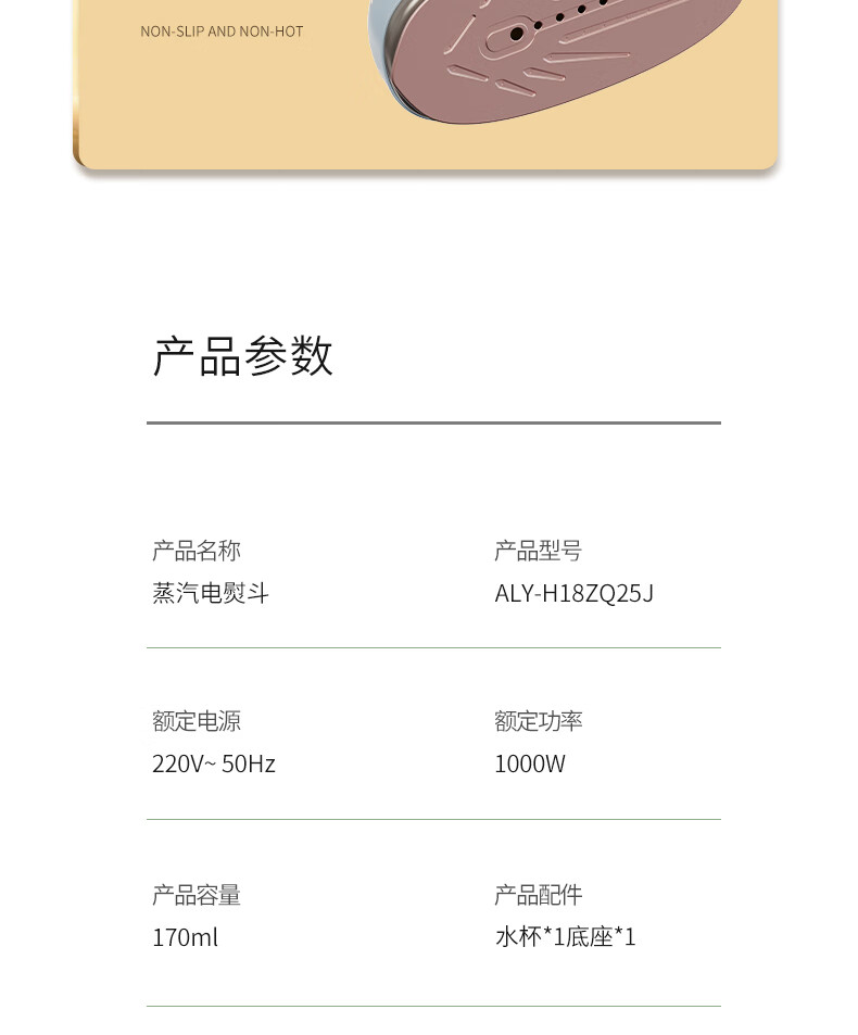 双重操温保护,干湿两用;;旋转把手,多孔大熨烫平面蒸汽底板;360°可视水箱、复古手柄设计