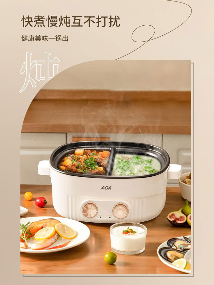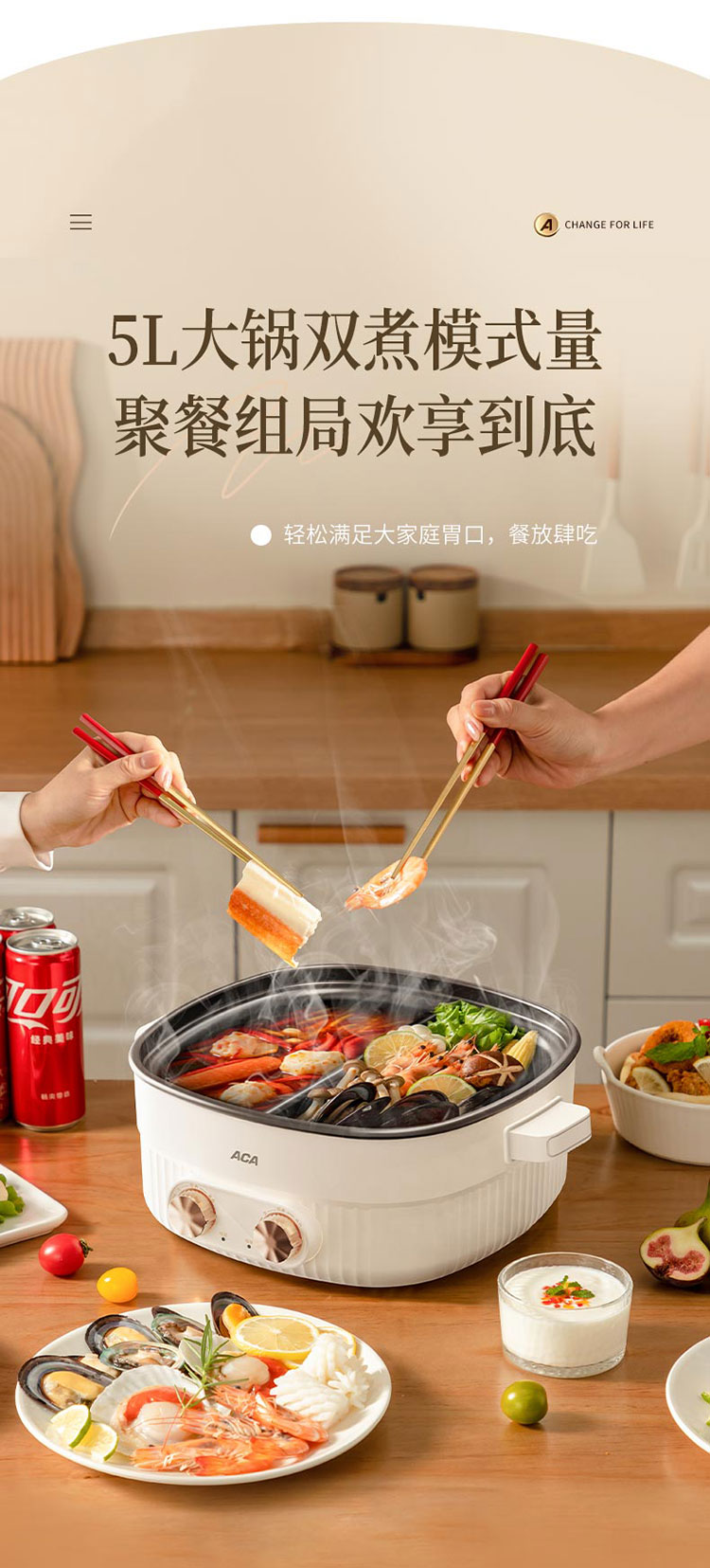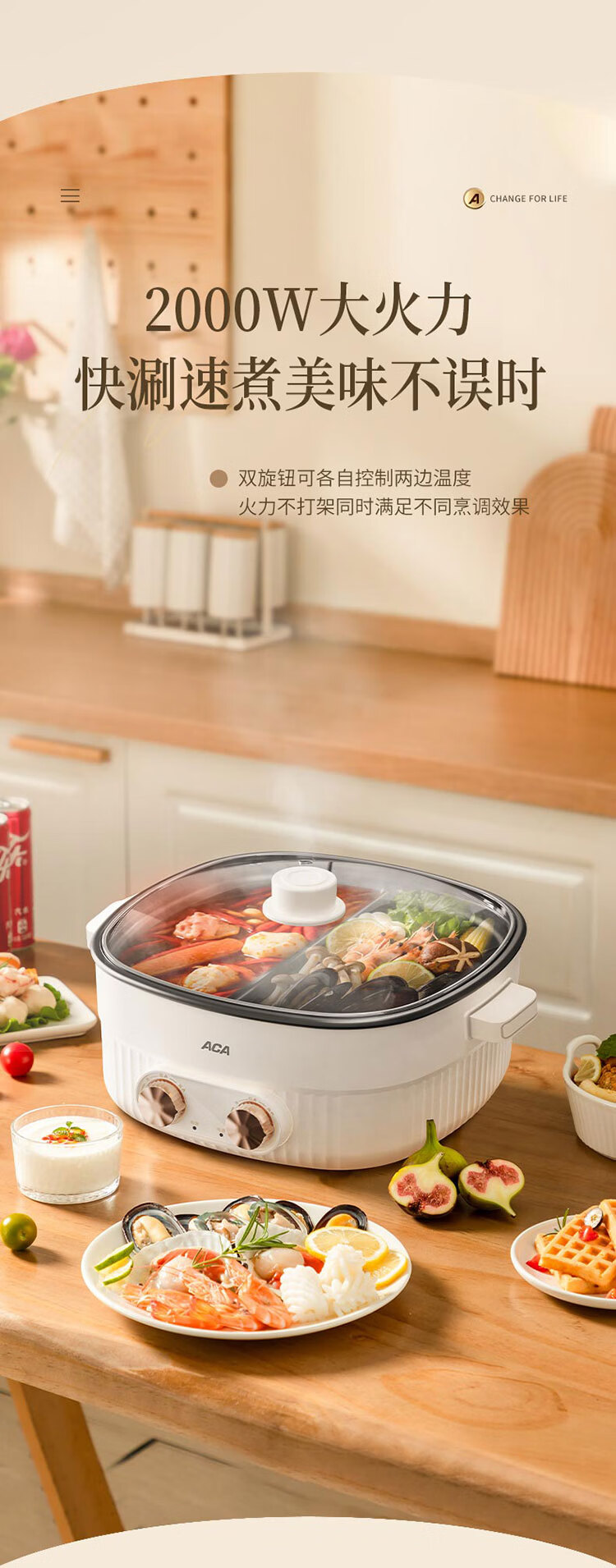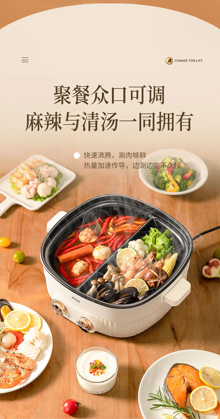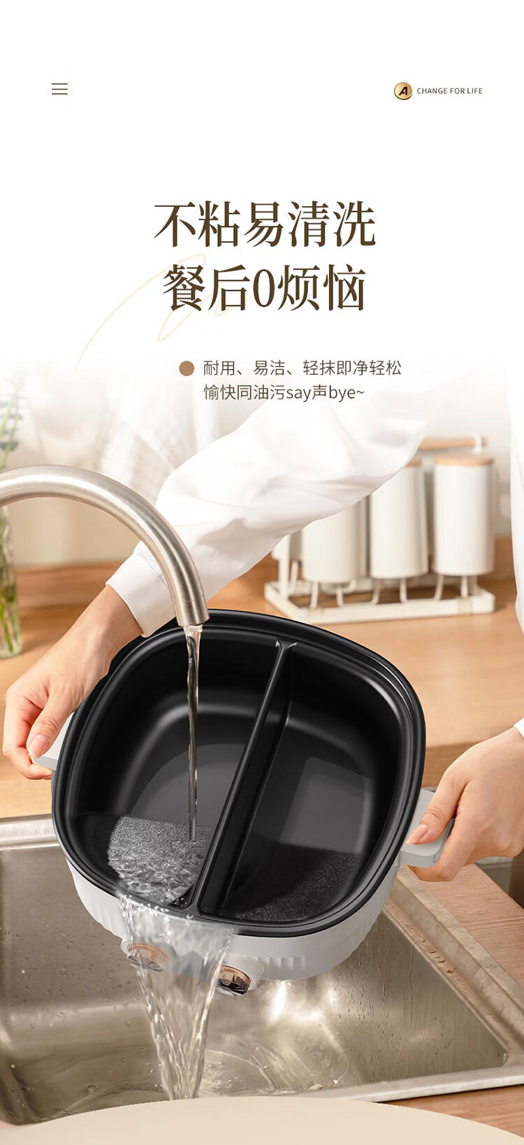 一锅两用,辣与清淡同时刷;容量大多人可以同时用餐;安全实用,接触食物均为食品级