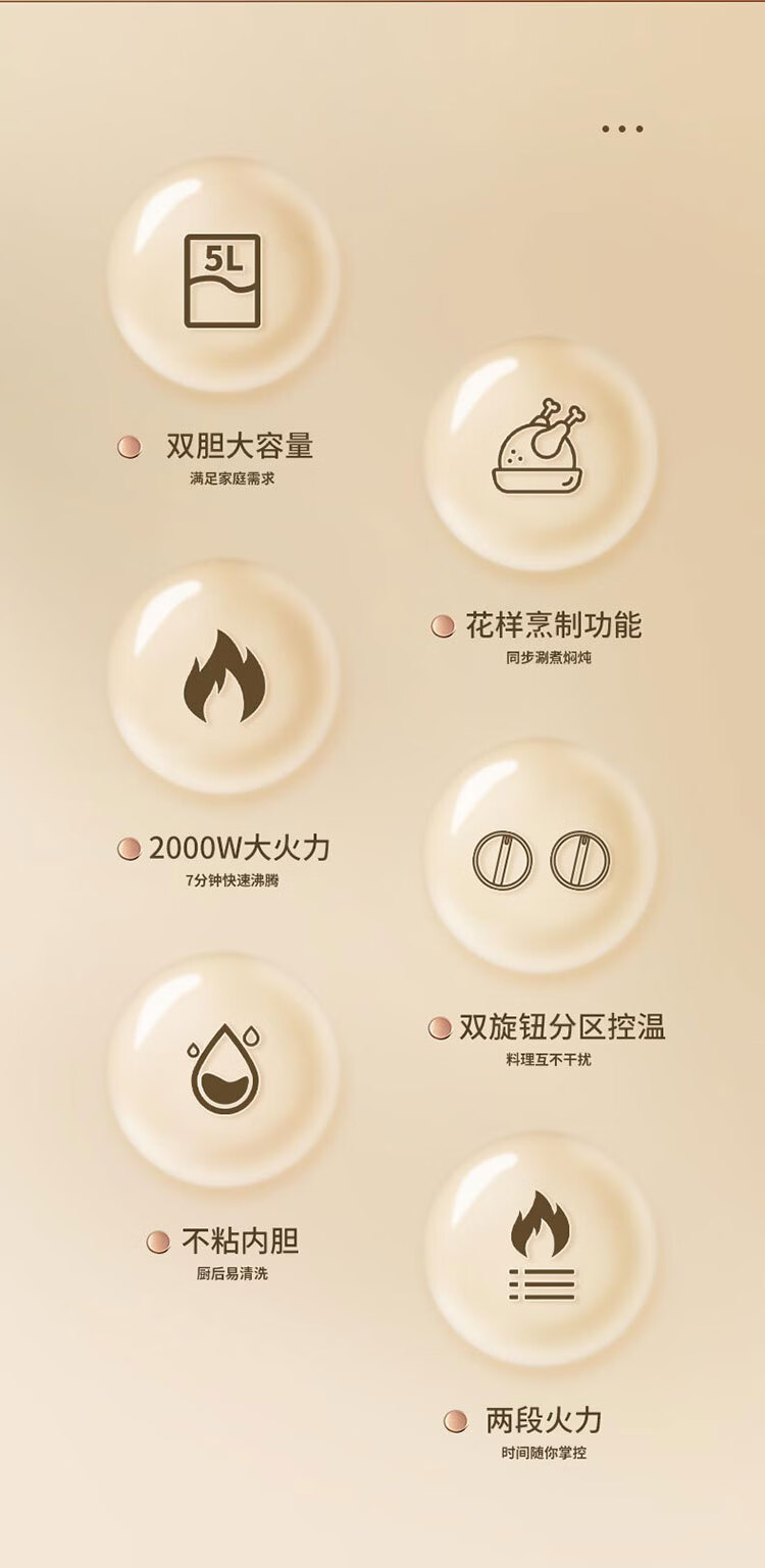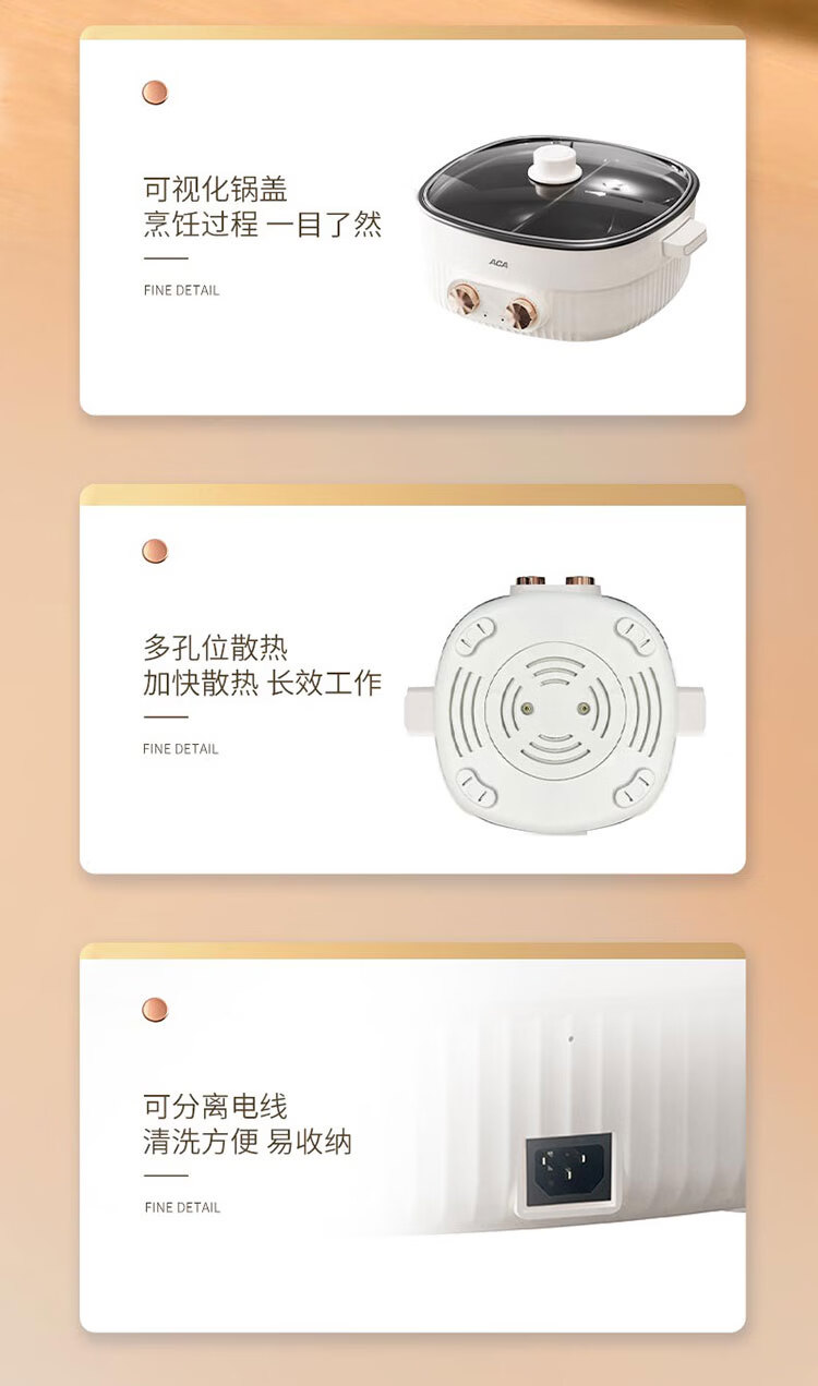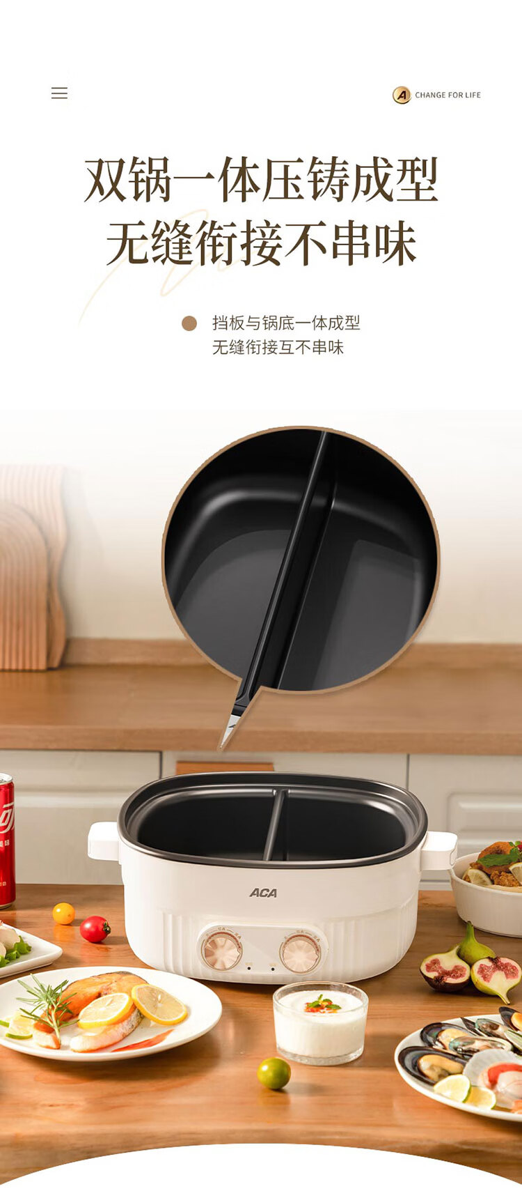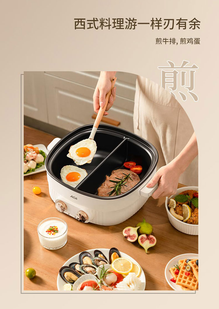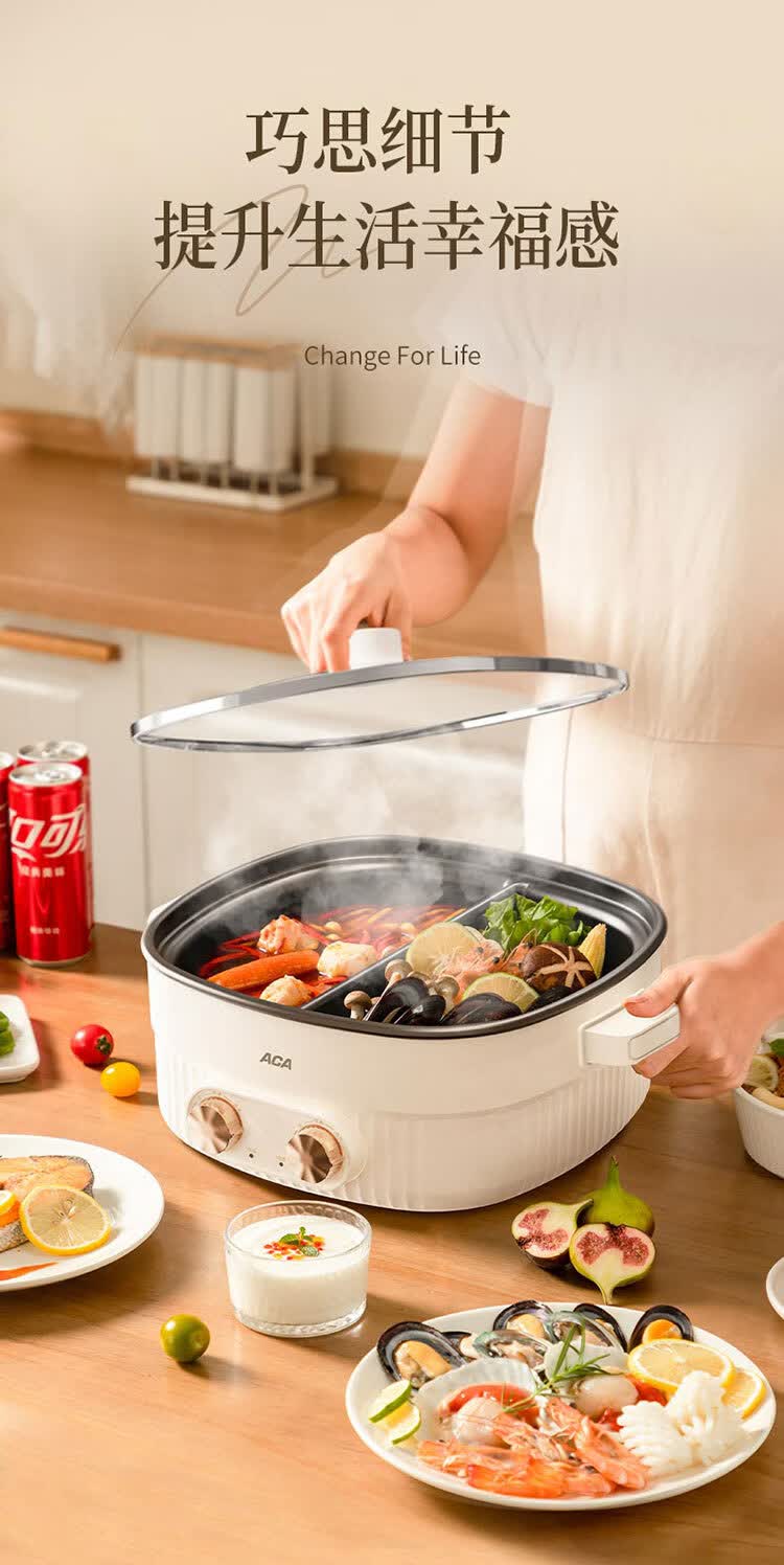 一锅两用,辣与清淡同时刷;容量大多人可以同时用餐;安全实用,接触食物均为食品级