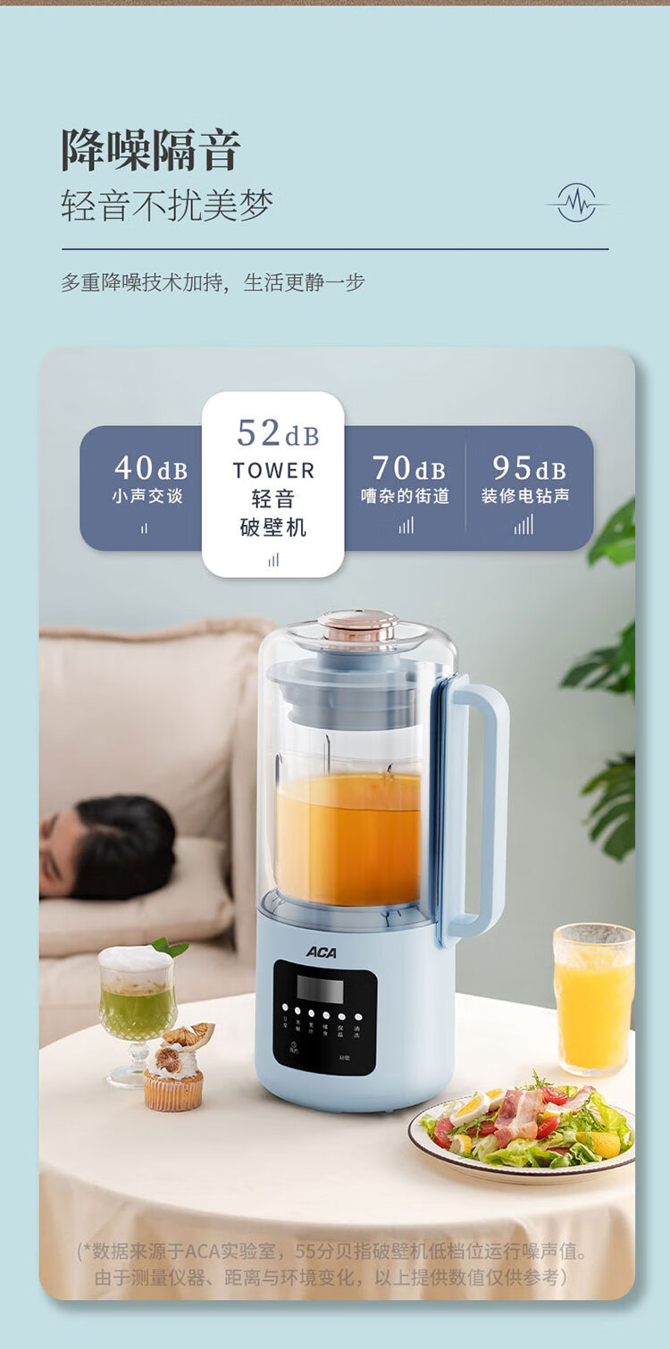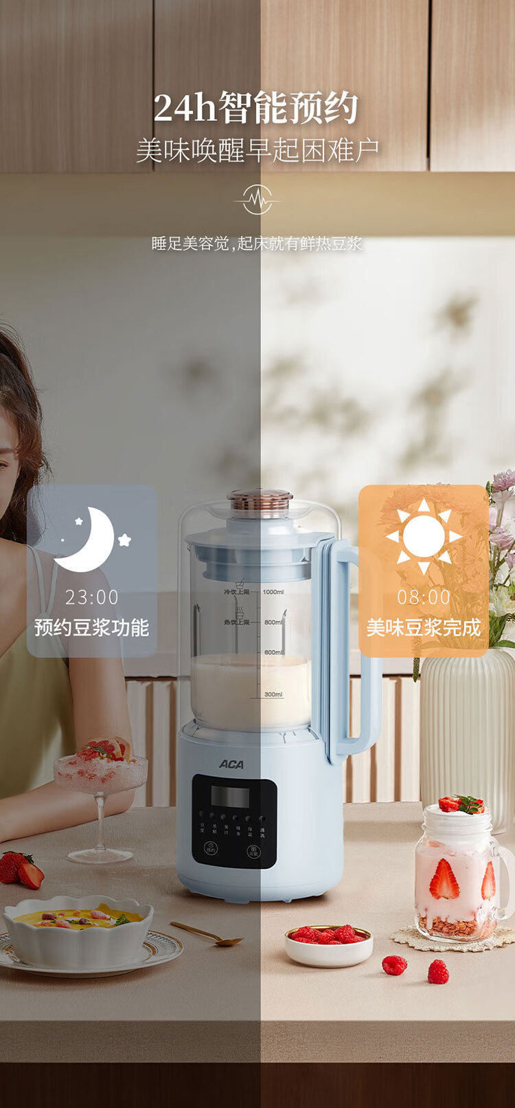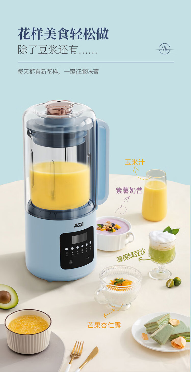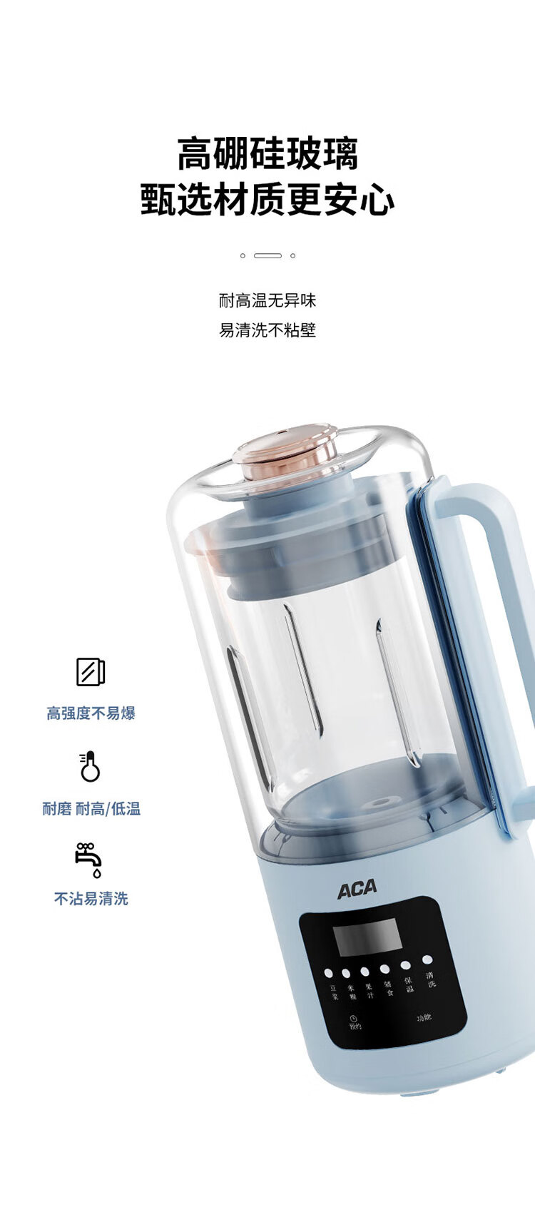 智能显示面板,6大功能随心选;冷热双打一键清洗,一年四季,一键解锁花样饮品;低音运行,细腻无渣好营养