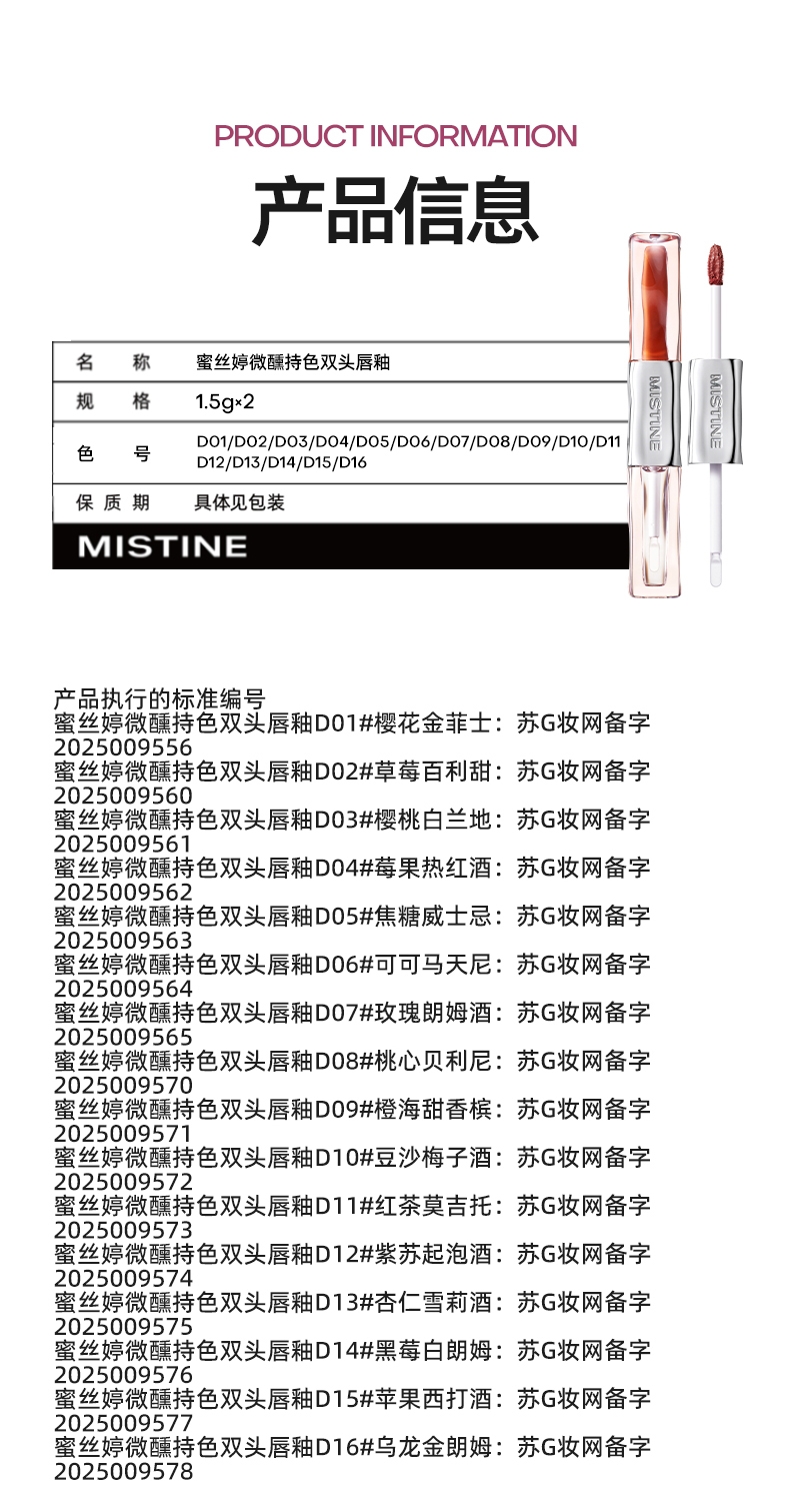 蜜丝婷 微醺持色双头唇釉圆管方管