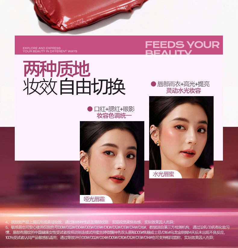 不沾杯持色嘟嘟唇;轻松卸除妆容;全脸多用,打造统一妆容色彩