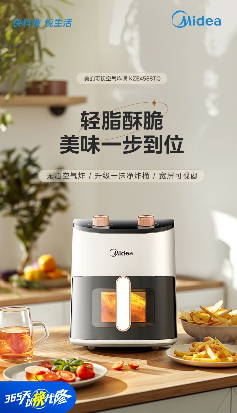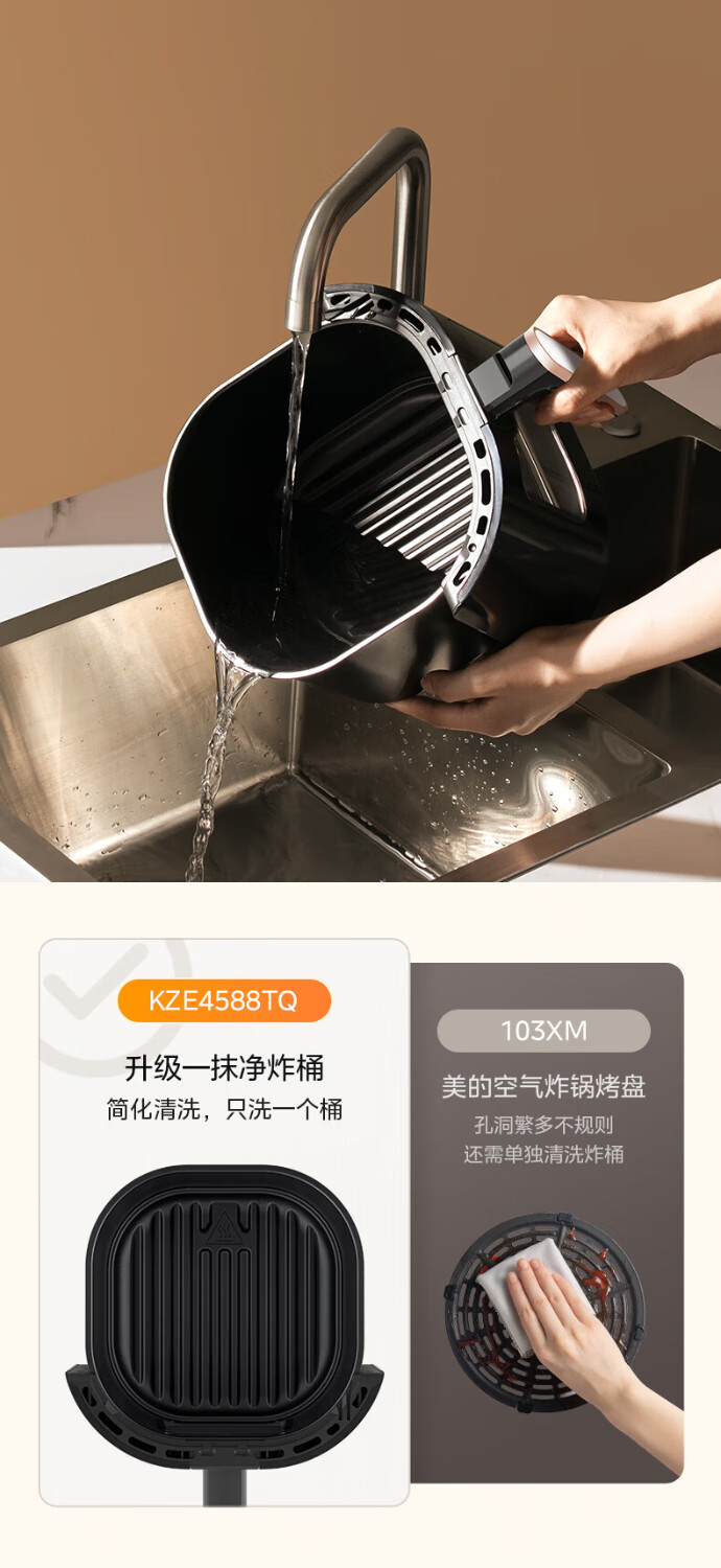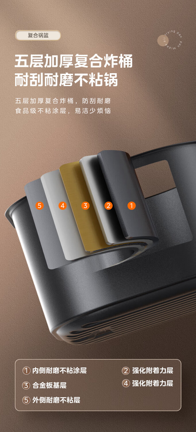 宽屏可视窗,不抽捅也能辨生熟;4.5L精巧容量,聚会美味大放送;盘桶合一,食品接触级不粘涂层,更容易清洗