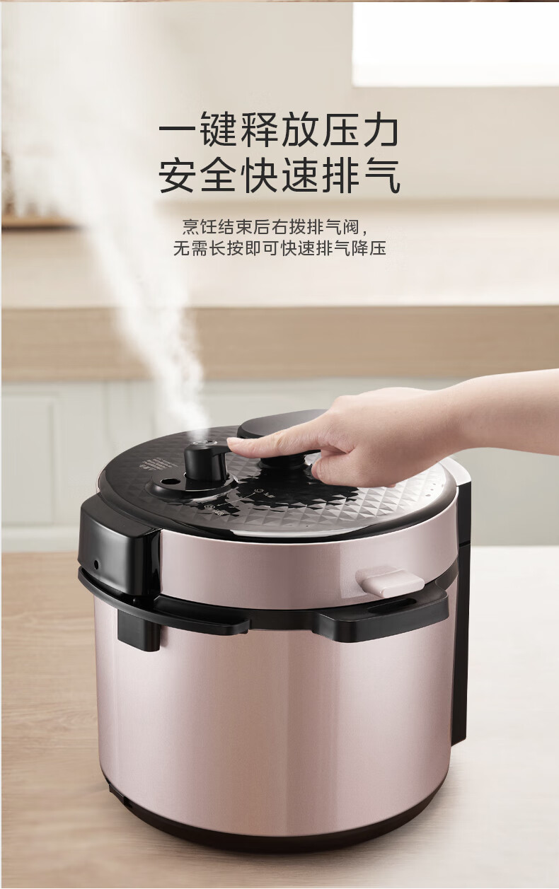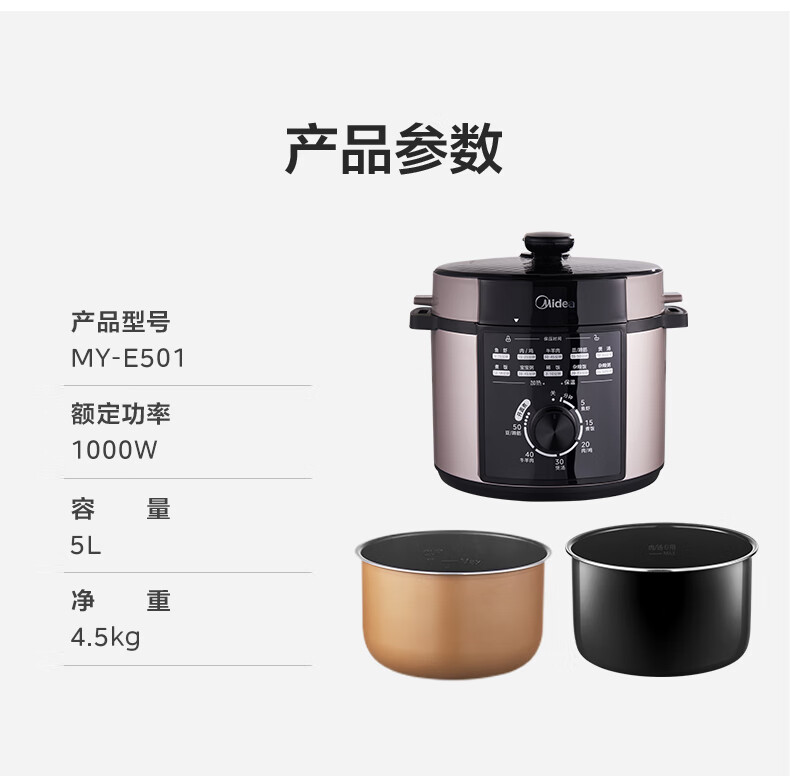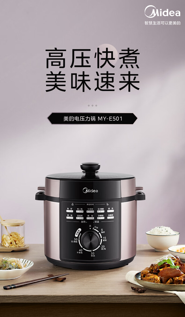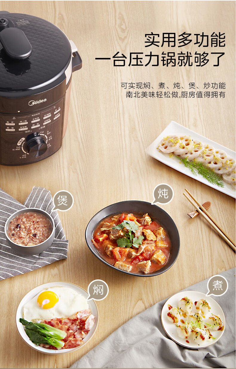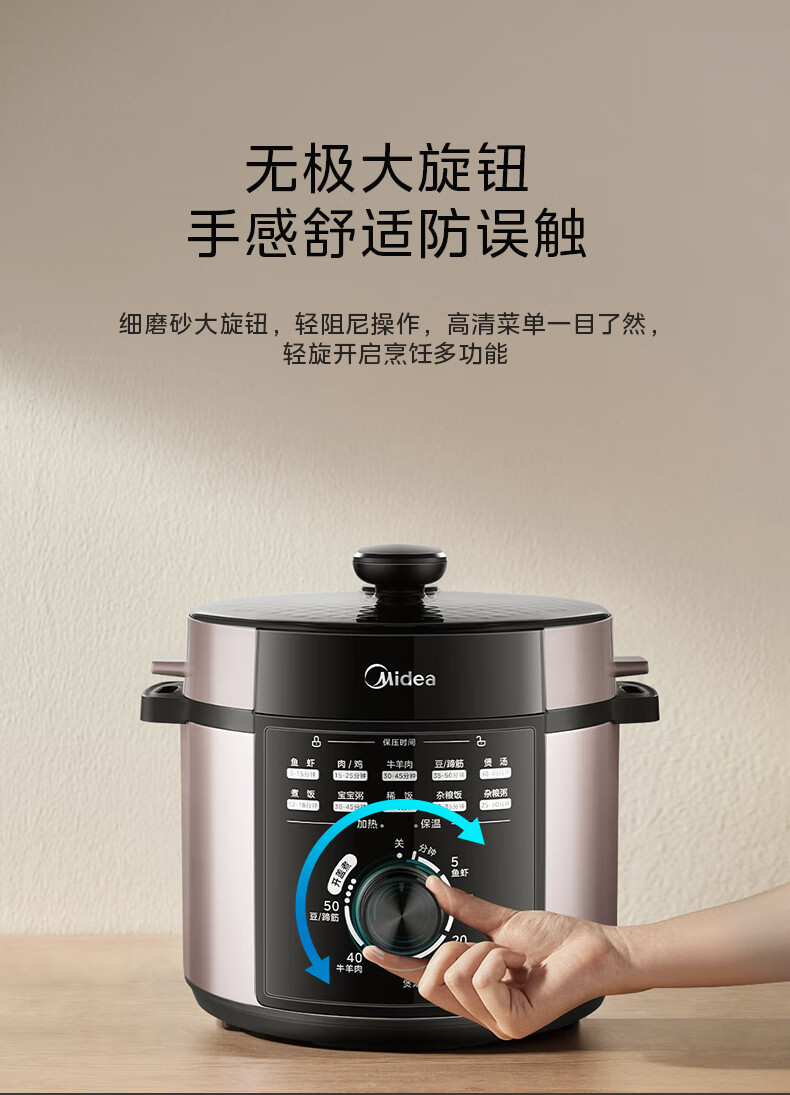 美的 (Midea)电压力锅旋钮简易操作高压锅金属外壳压力锅