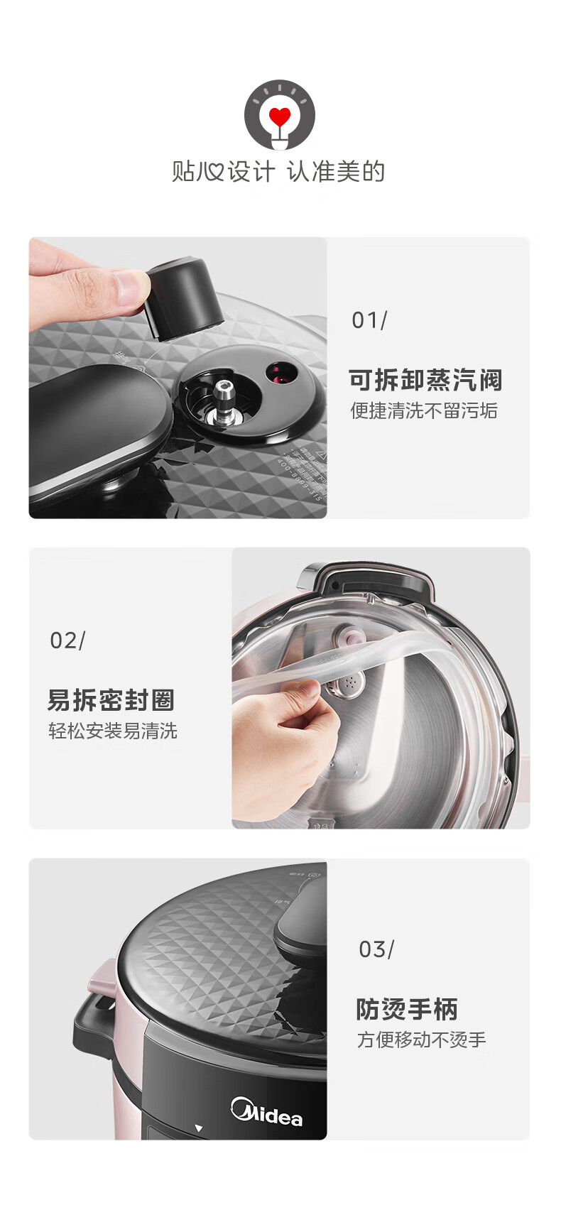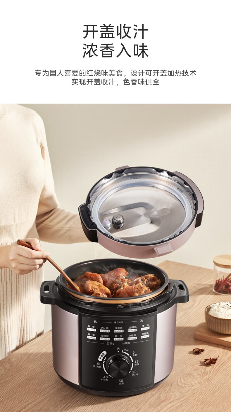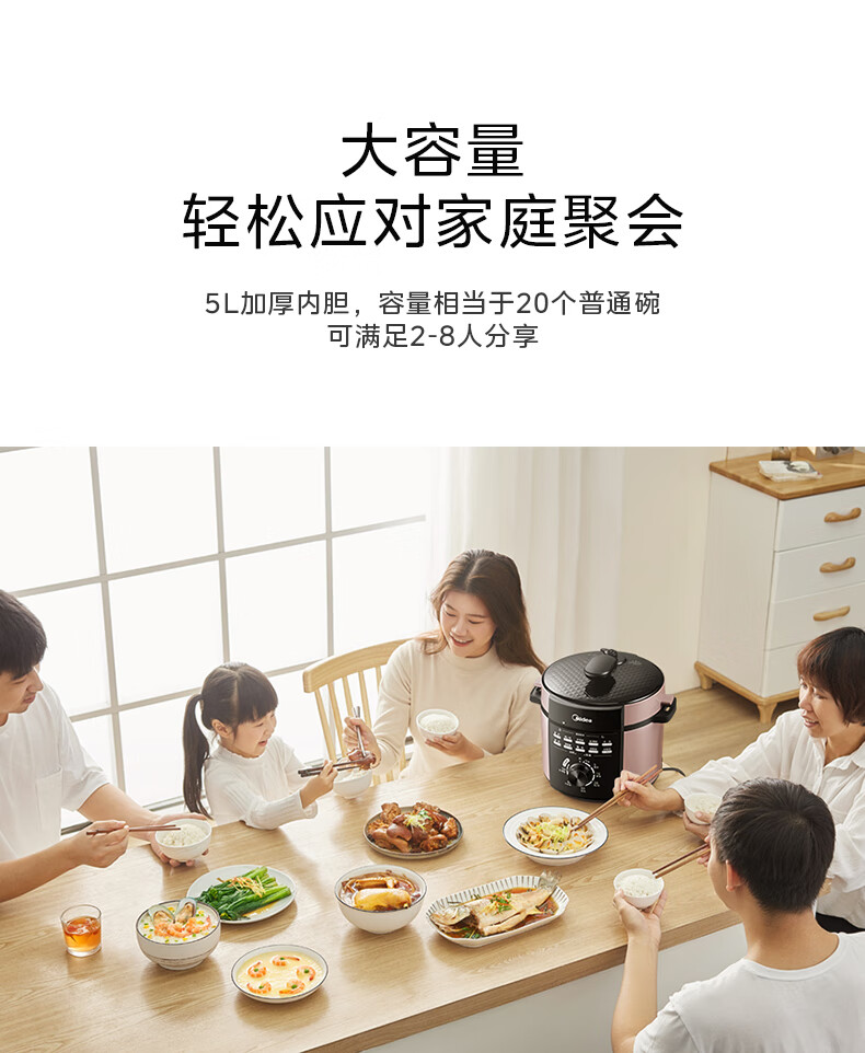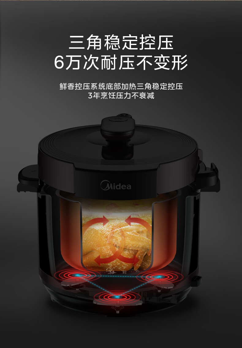 美的 (Midea)电压力锅旋钮简易操作高压锅金属外壳压力锅