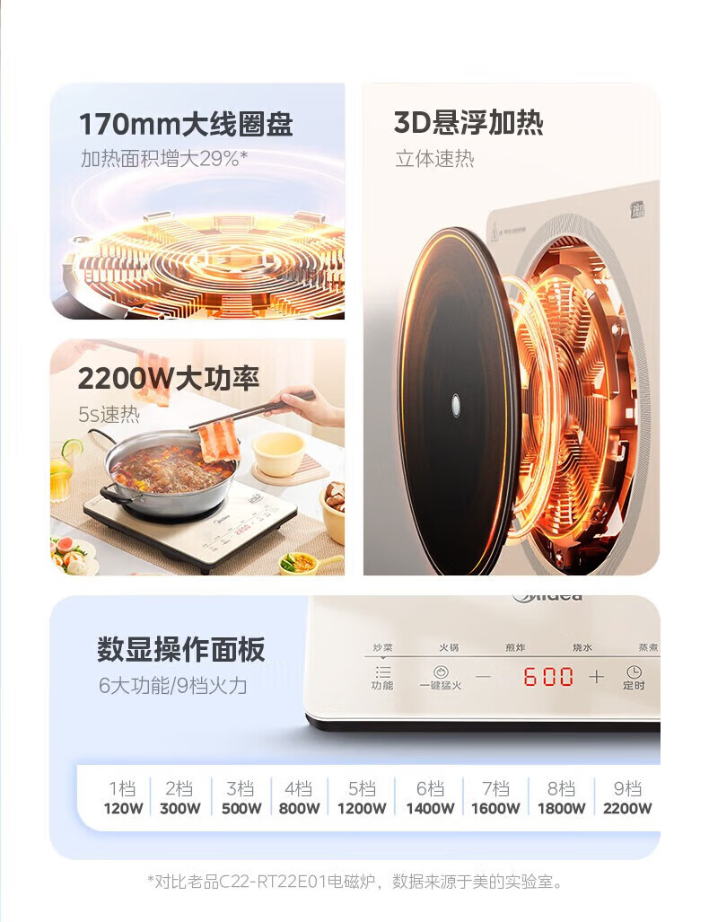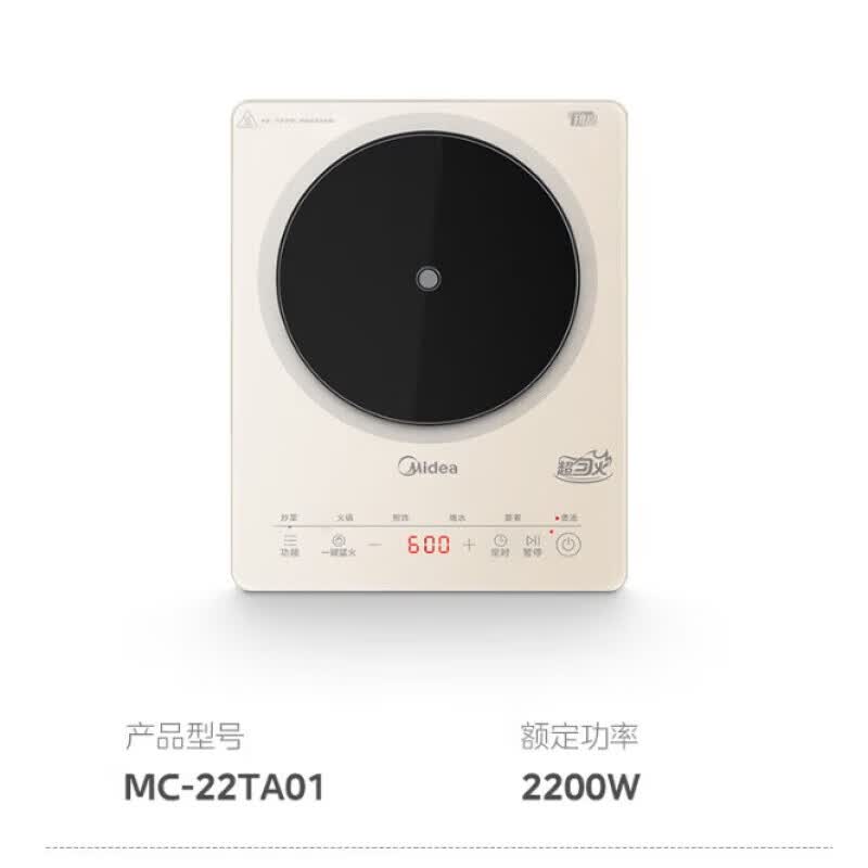 美的 (Midea)电磁炉火锅炉2200W大功率微晶面板匀火加热智能定时