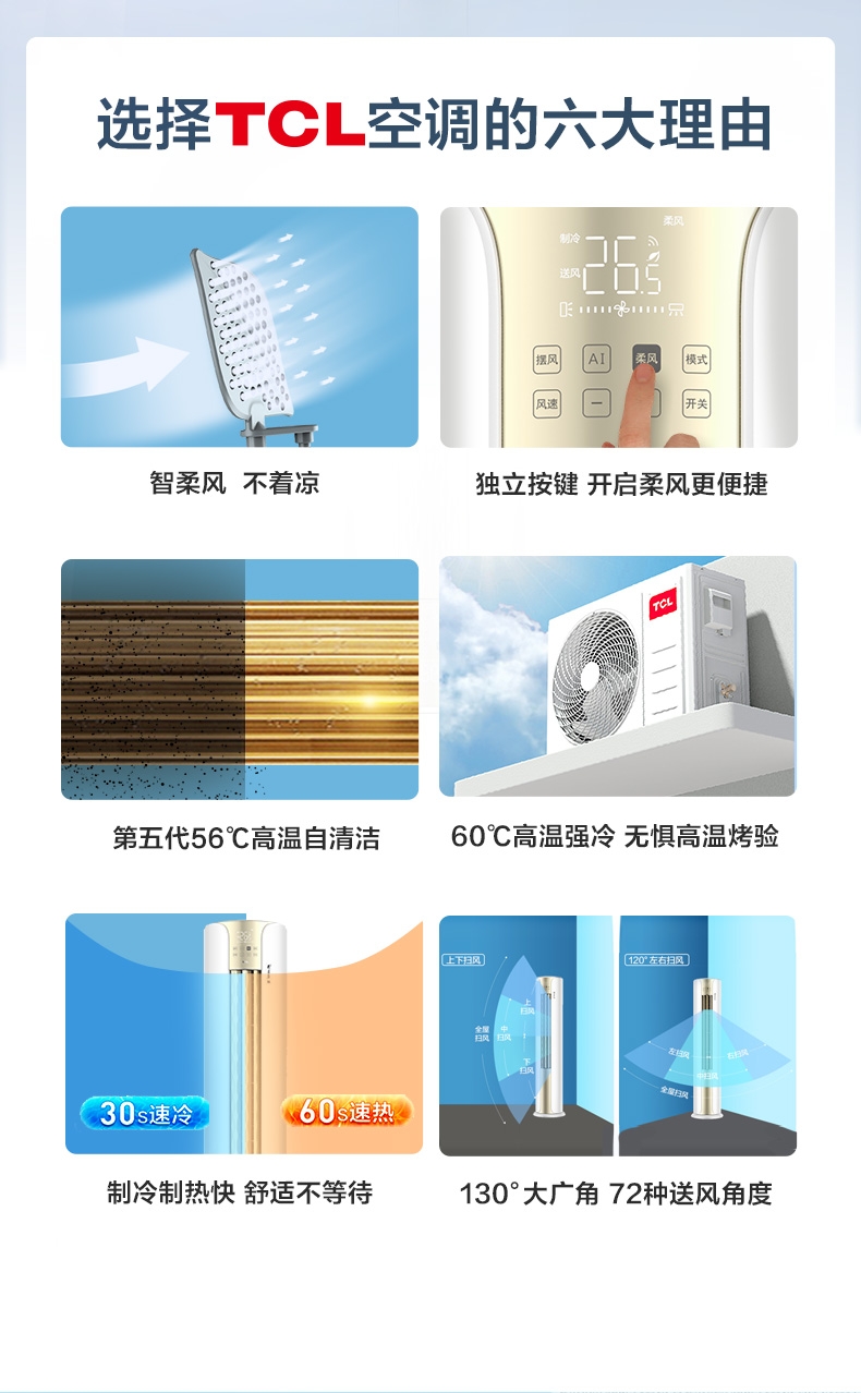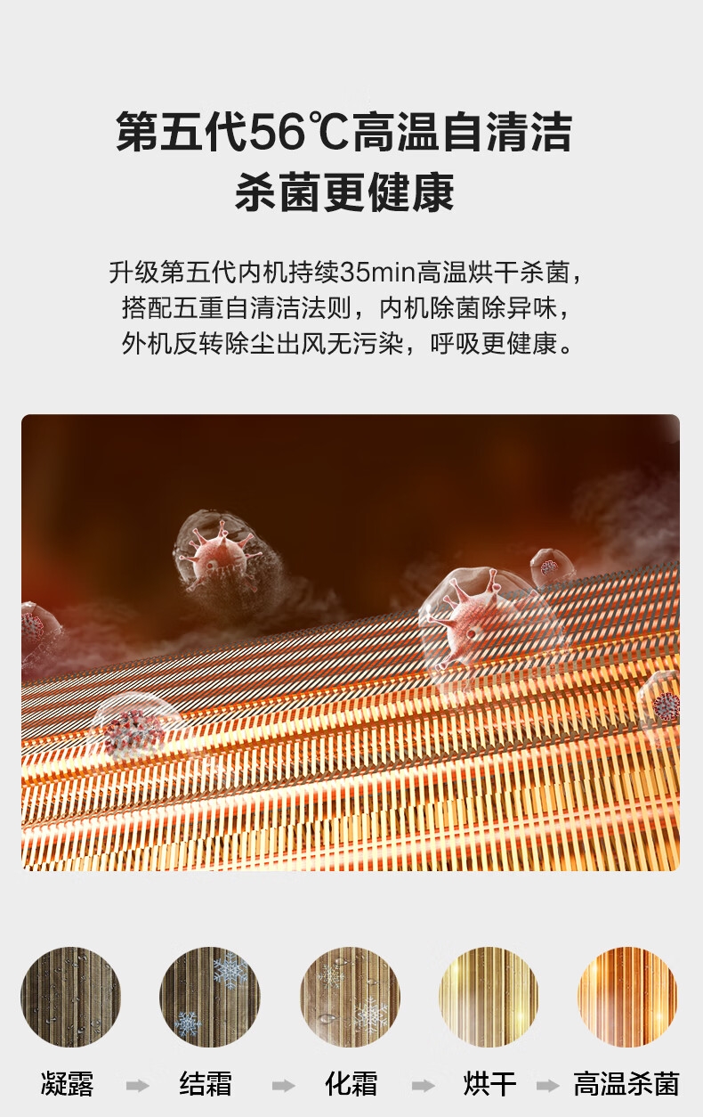 第五代56°C高温自清洁 杀菌更健康;制冷制热快 舒适不等待;