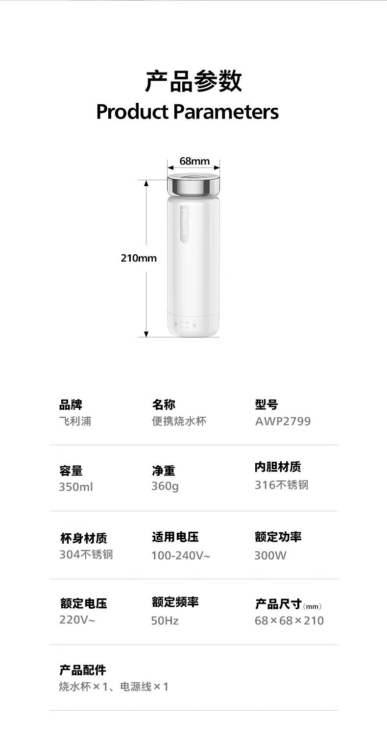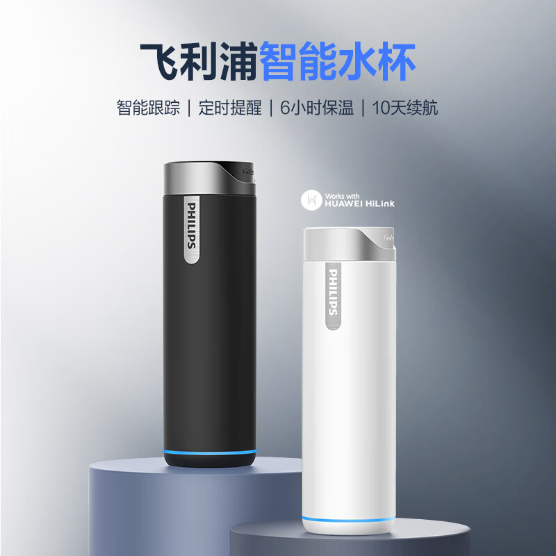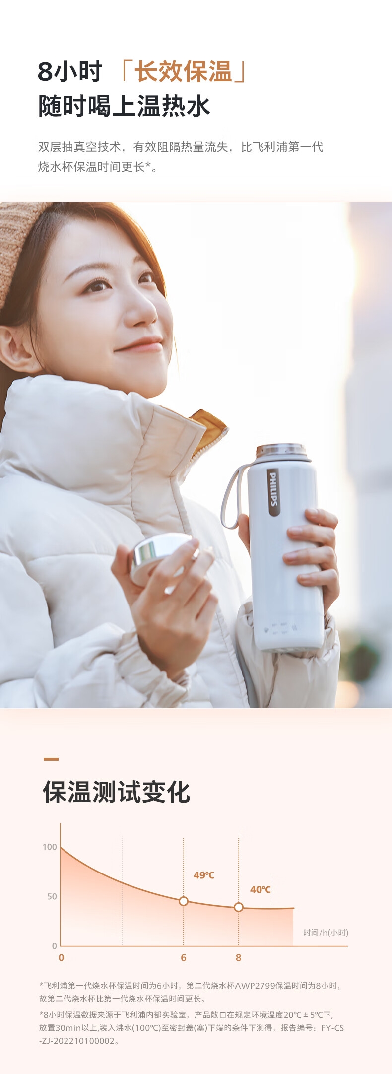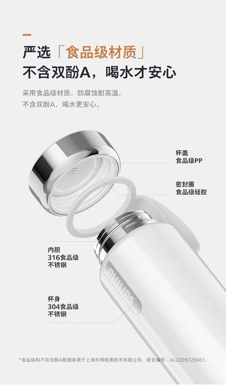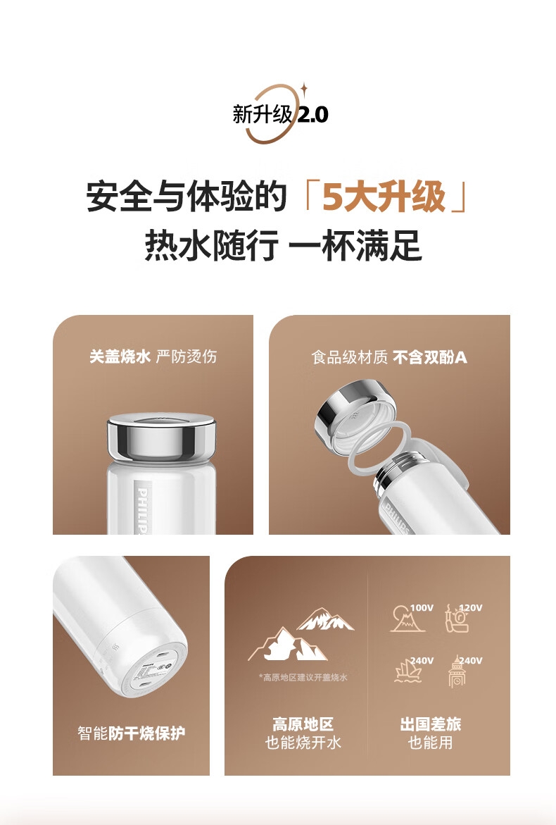 飞利浦 (PHILIPS)随行电热水杯便携迷你烧水杯316不锈钢内胆电热杯保温杯420ml黑色