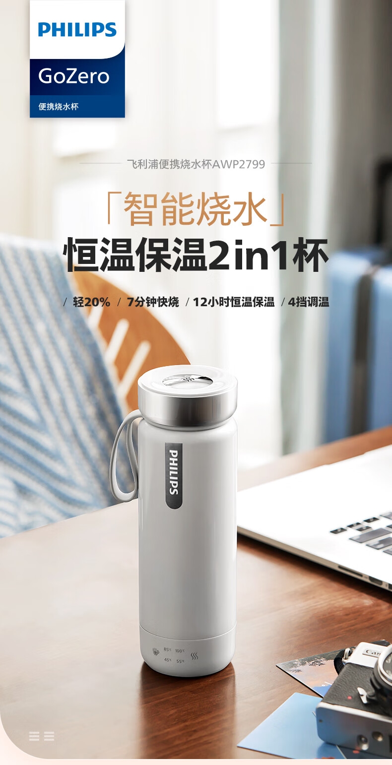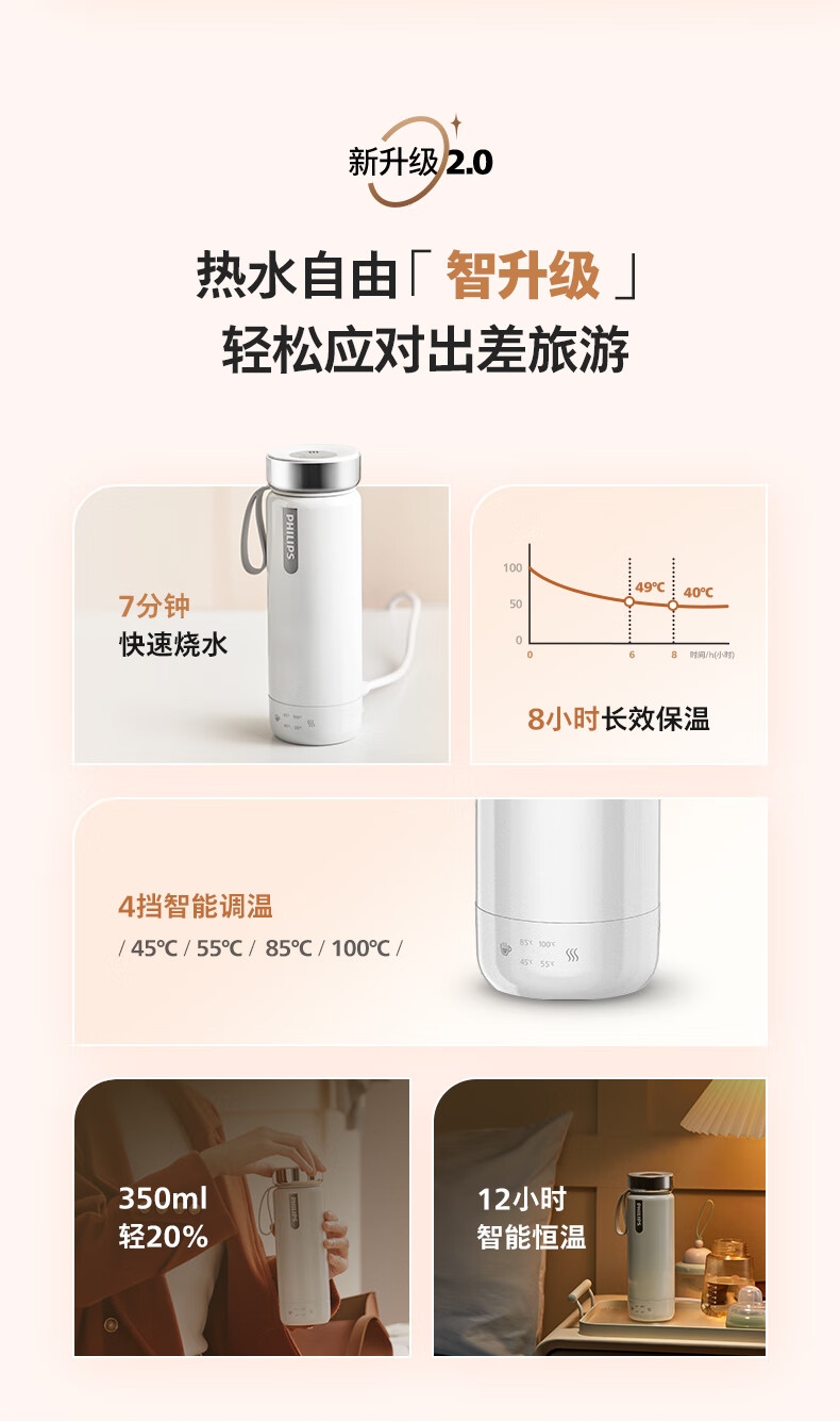 12小时恒温保温2in1杯 ;4挡「智能调温」开盖就是想要的温度;7分钟「快速烧水」 热水无需久等