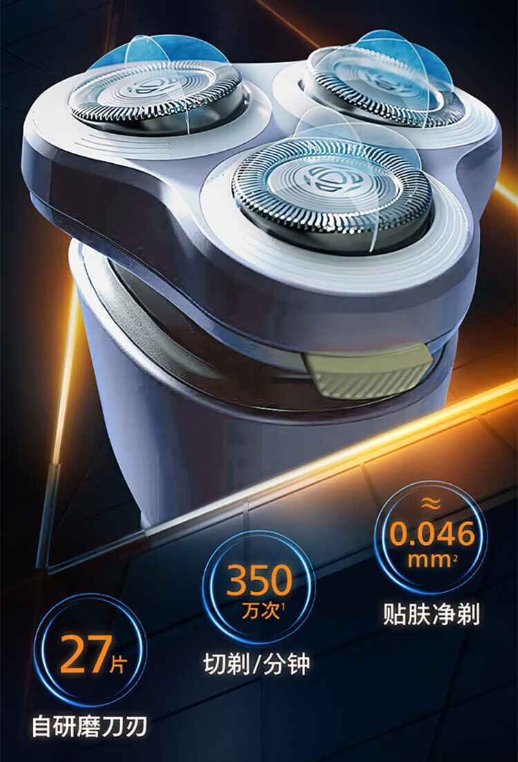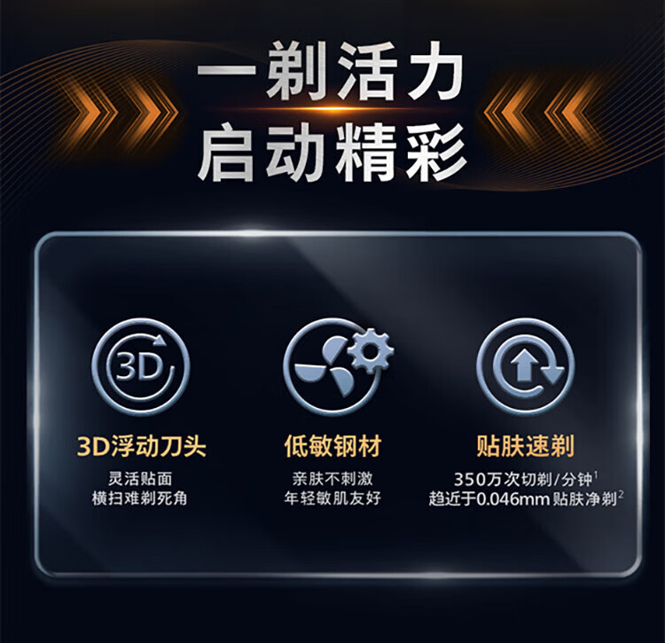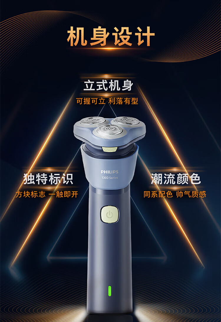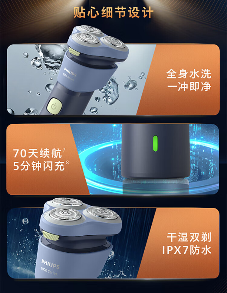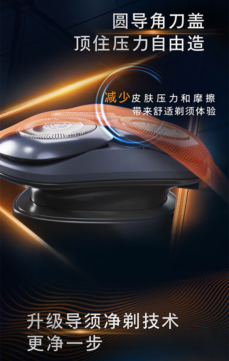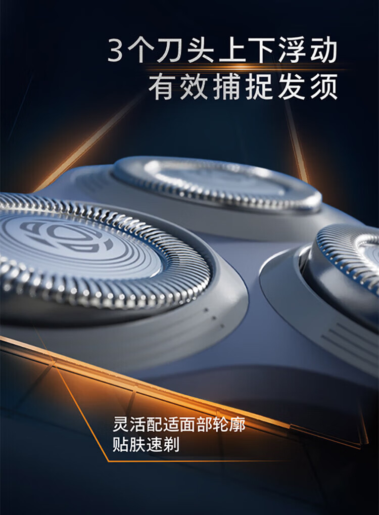 风驰切剃,3D浮动刀头,5分钟闪充,干湿两用;干湿双剃,满足多样剃须需求;时尚设计,握感舒适易操;快速充电,5分钟续航持久便捷