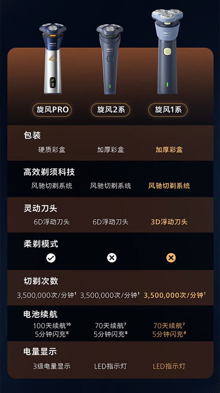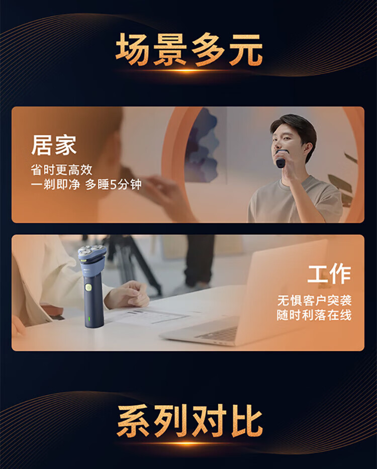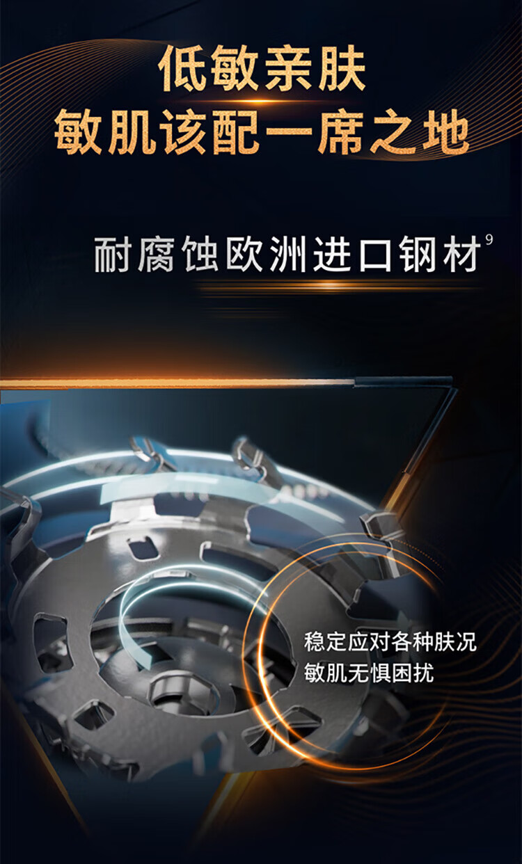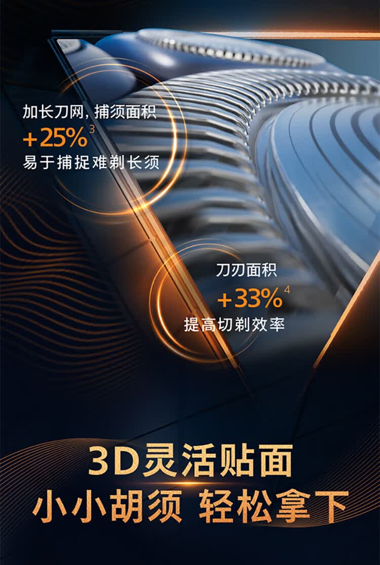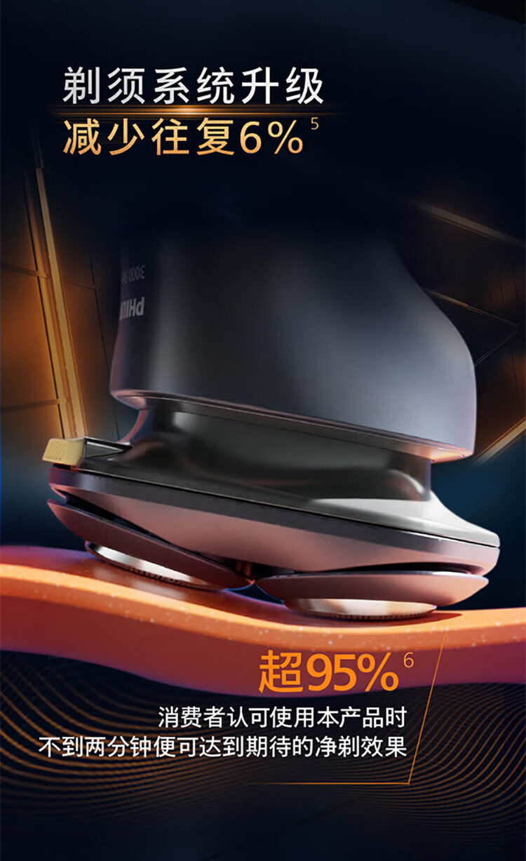 风驰切剃,3D浮动刀头,5分钟闪充,干湿两用;干湿双剃,满足多样剃须需求;时尚设计,握感舒适易操;快速充电,5分钟续航持久便捷