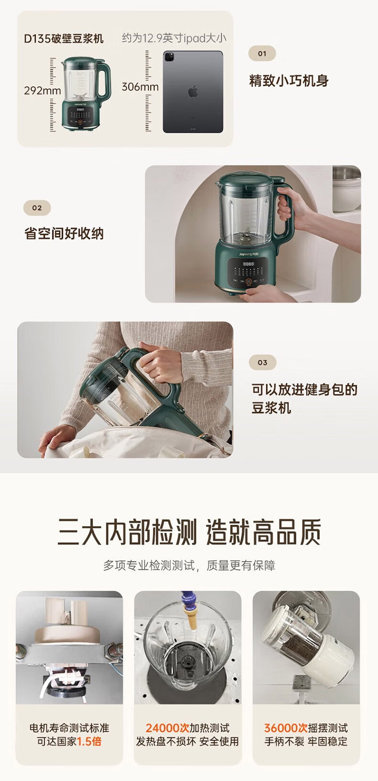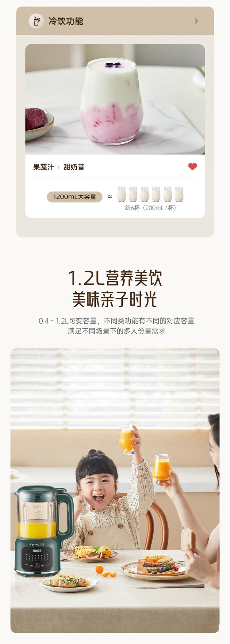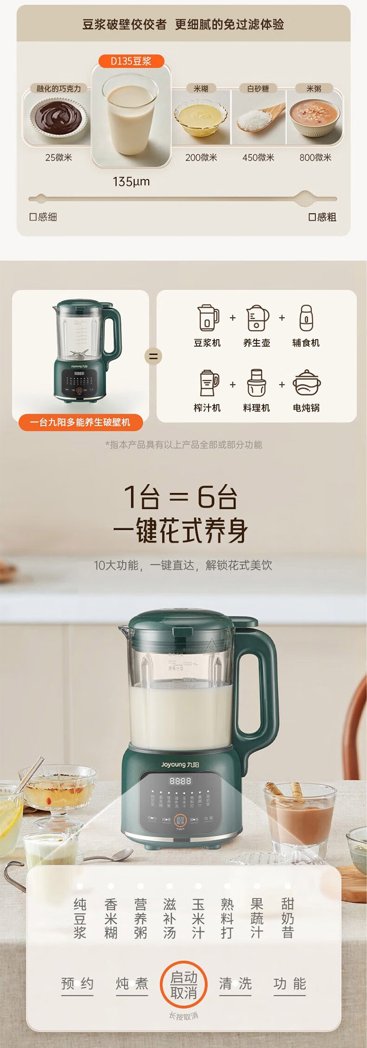 细腻破壁全能养生;10大功能花样不闲置;0.4-1.2L满足不同需求;精致小巧轻巧少占地;3-12h预约高效更从容