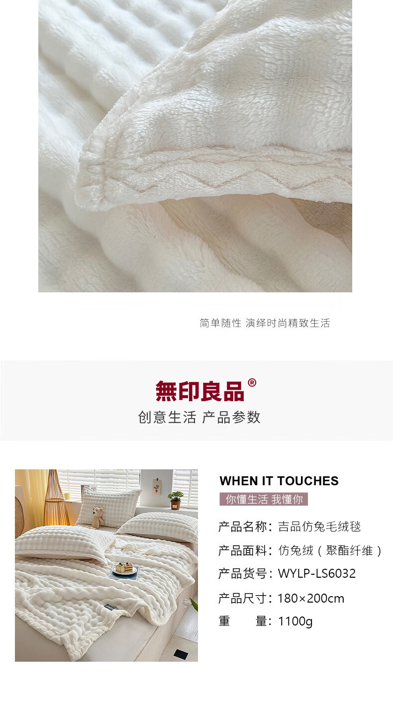 无印良品 無印良品吉品仿兔毛绒毯