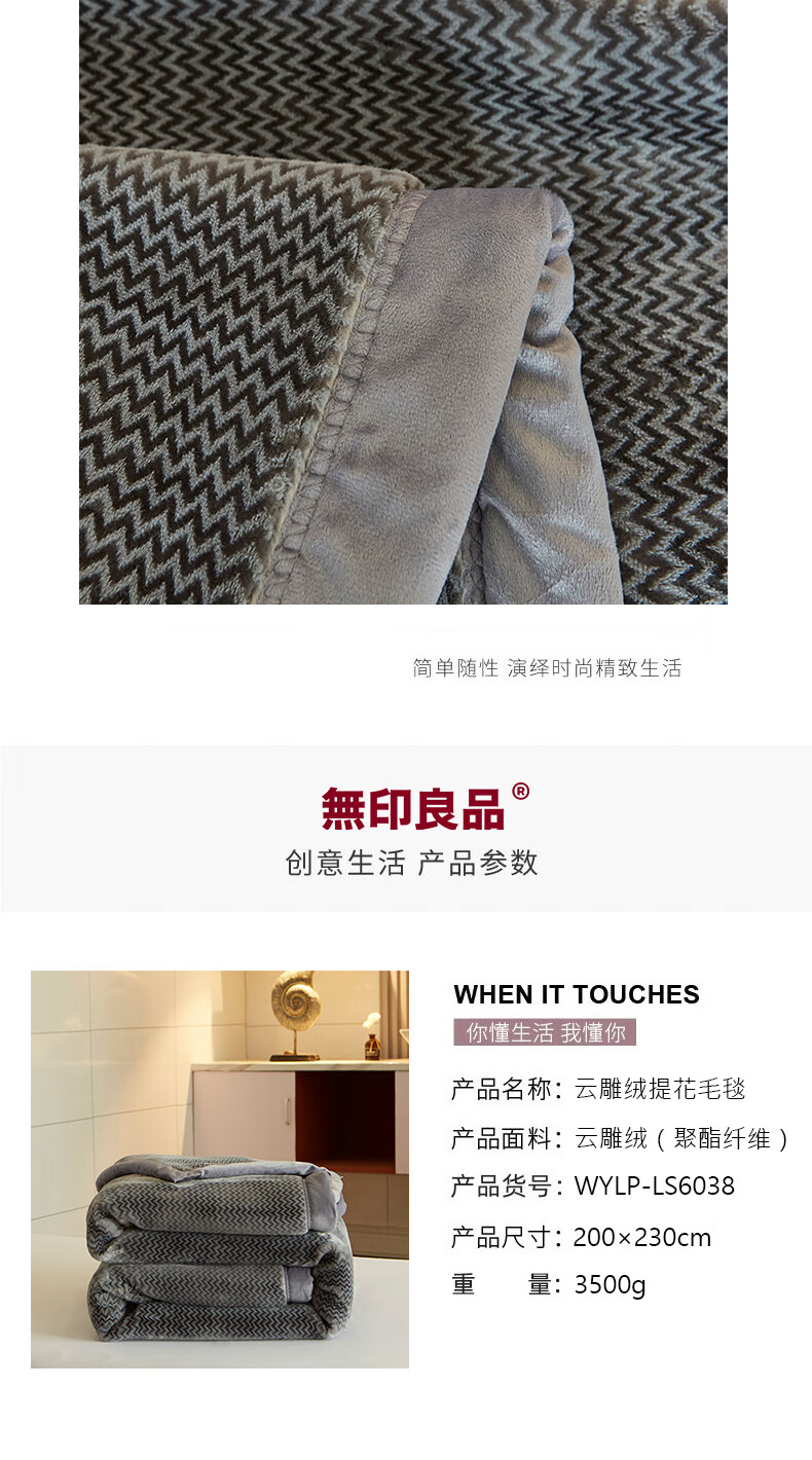 无印良品 無印良品云雕绒提花毛毯
