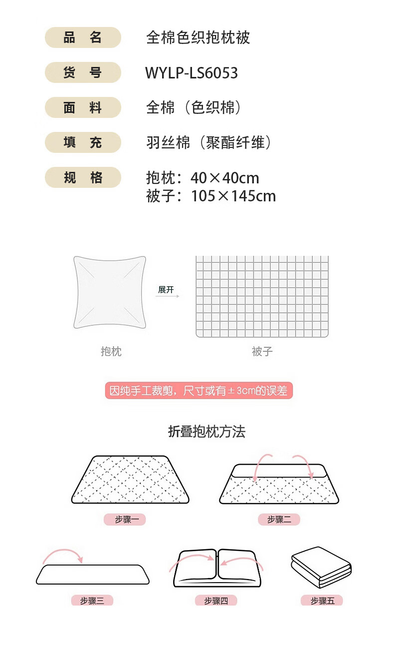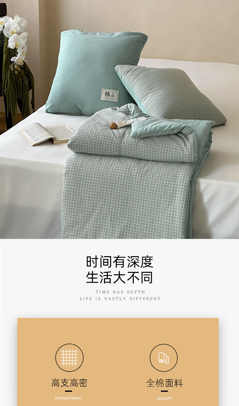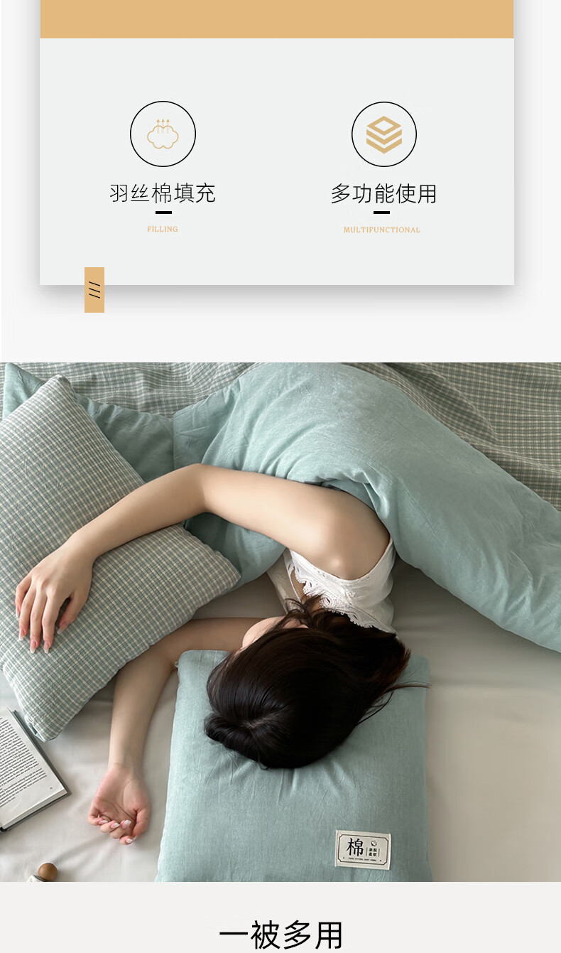 面 料:100%棉 (色织棉) 填 充: 羽丝棉(聚酯纤维)