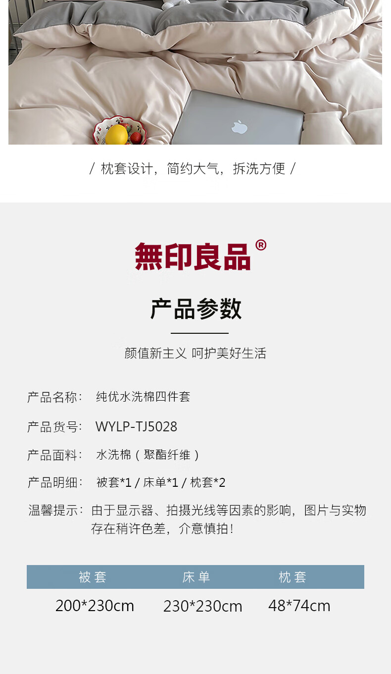 无印良品 無印良品纯优水洗棉四件套
