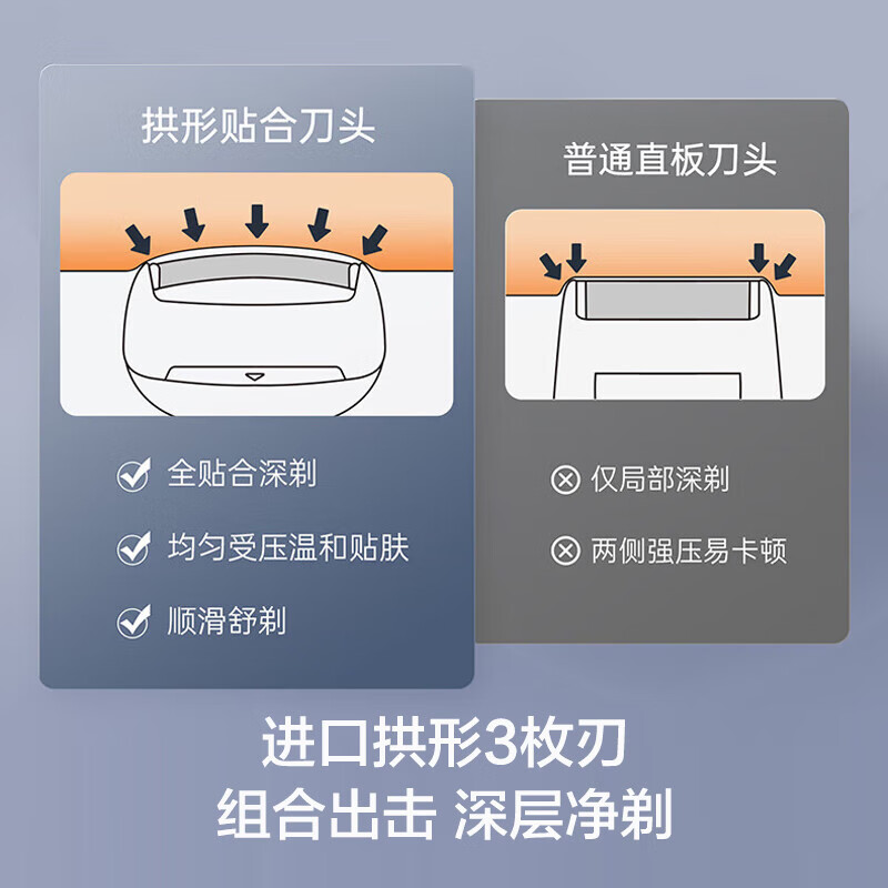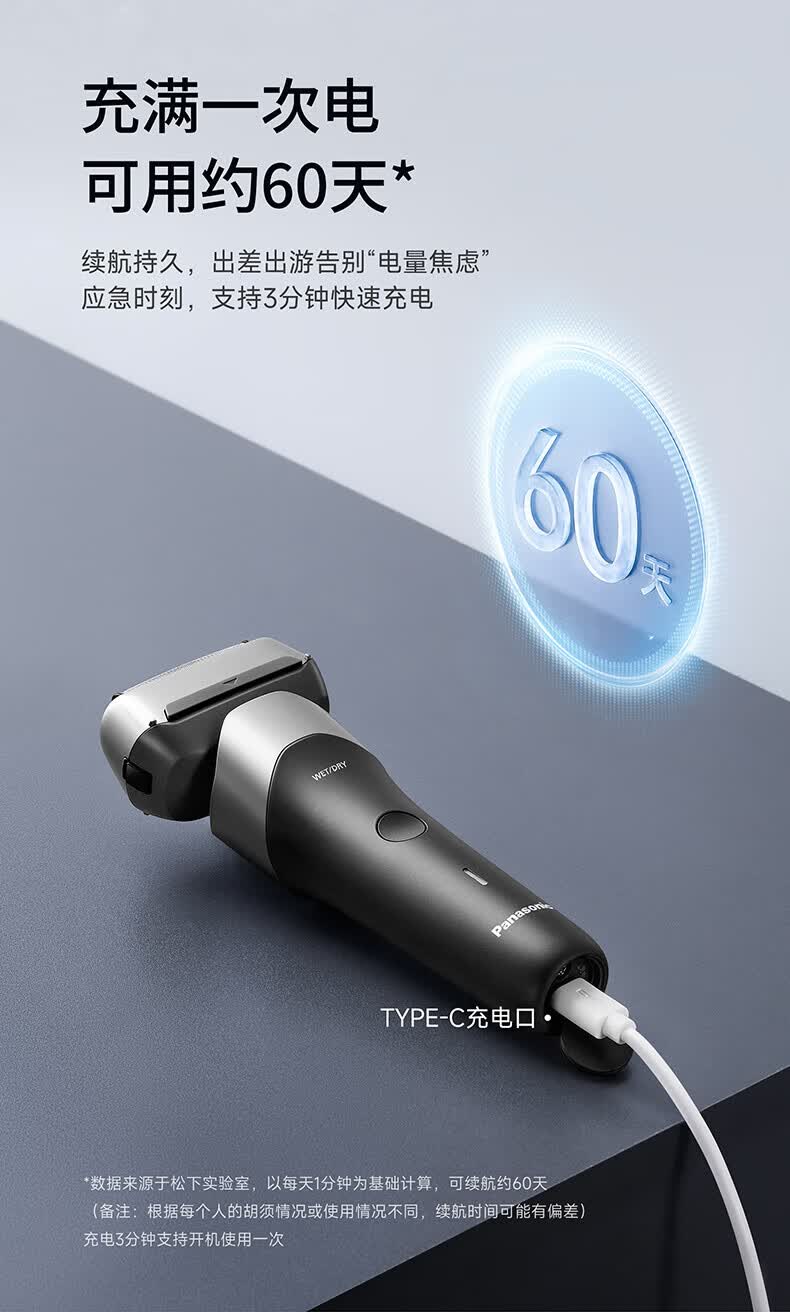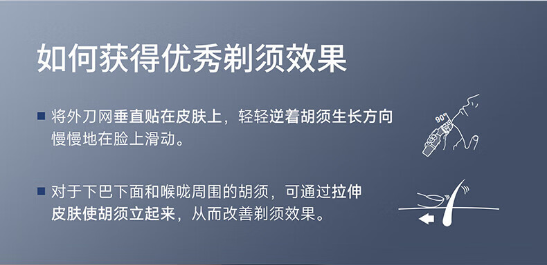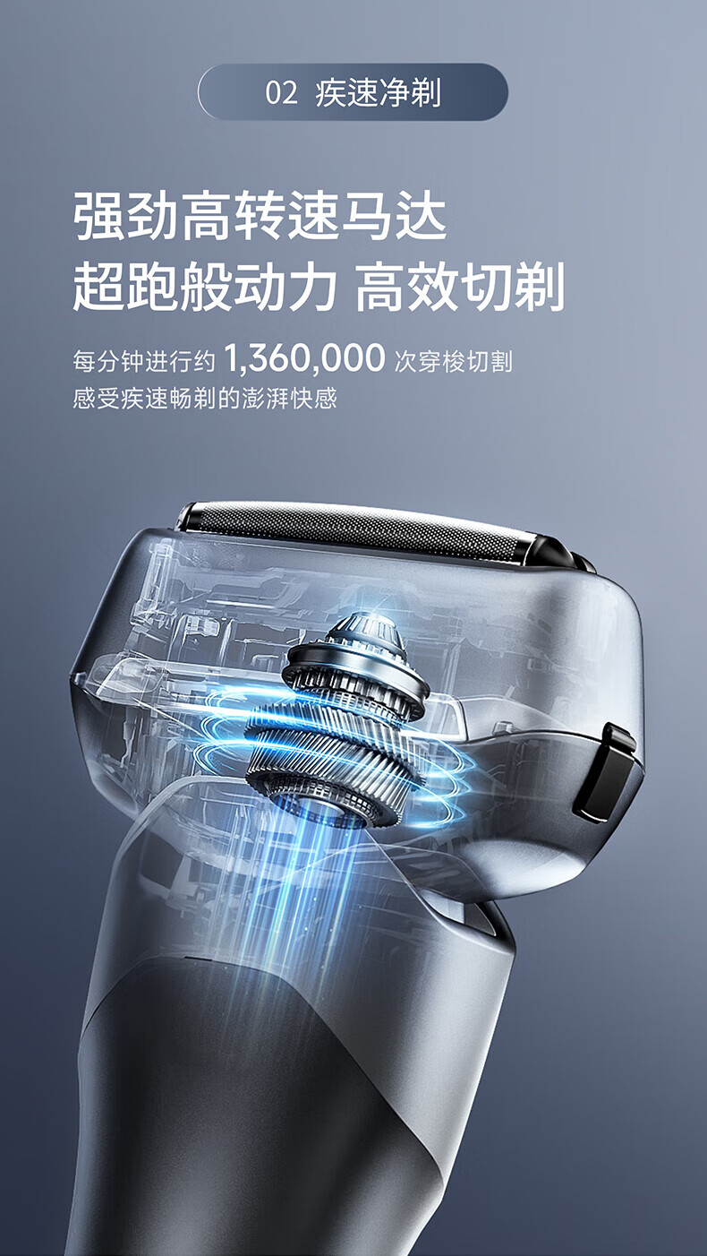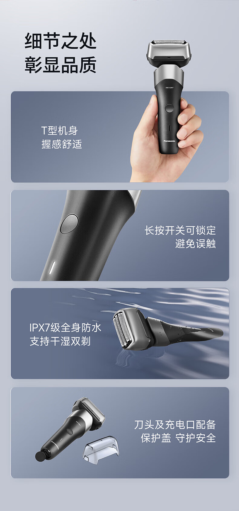 独立浮动三刀头,贴合面部轮廓净须快;高速马达驱动,剃须高效不拉扯刺痛;全身防水设计,干湿两剃清洁超方便;轻巧便携机身,出差旅行携带无负担;一键弹出刀头,清洗替换轻松又快捷