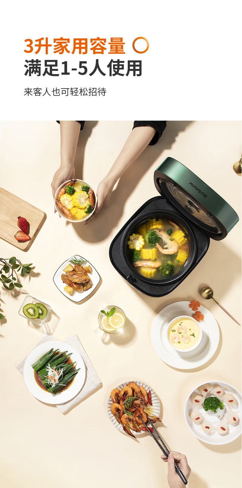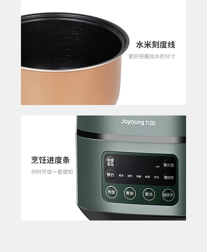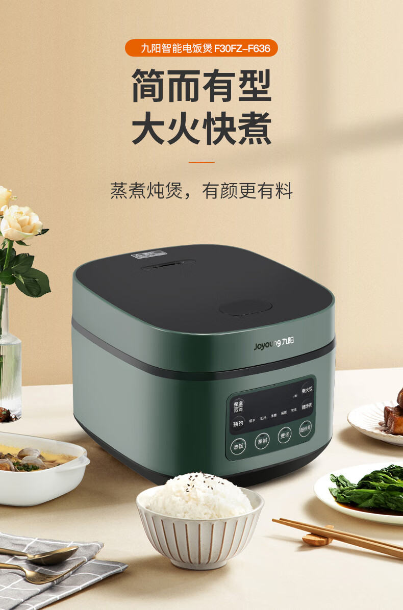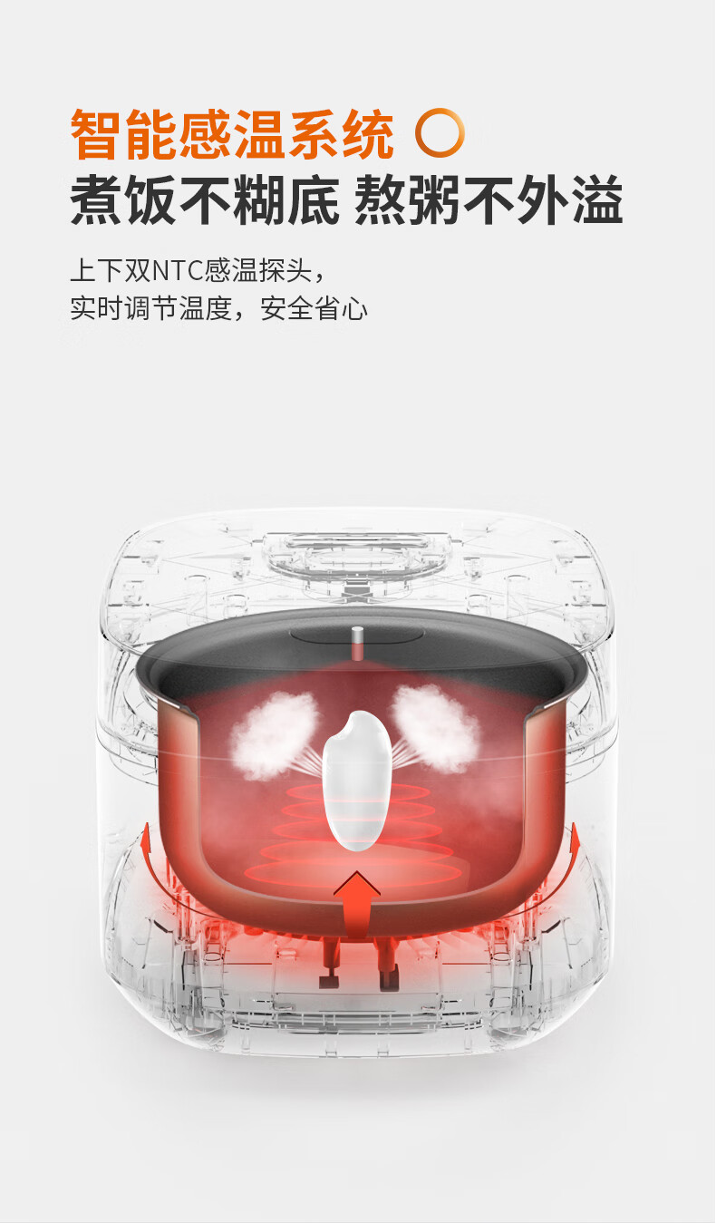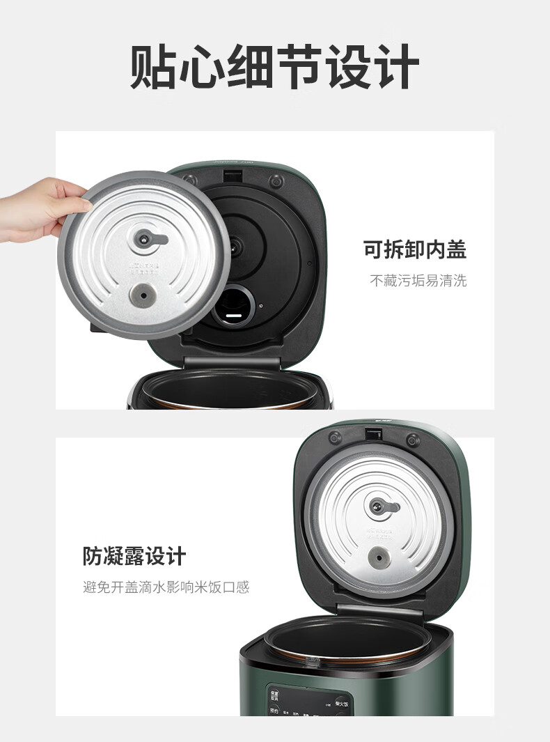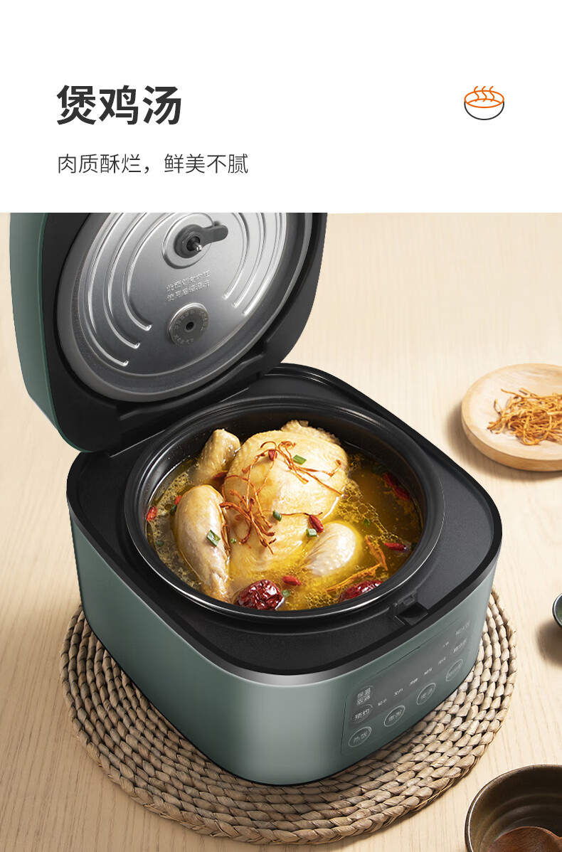 3L家用容量满足1-5人使用;12小时智能预约吃饭不匆忙吃饭不匆不忙,美味随心而;5层加厚耐磨材质,升温快,发热均匀米饭颗粒分明