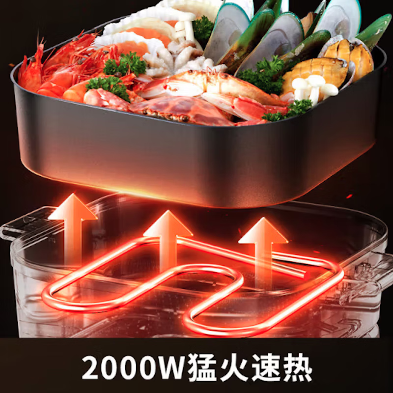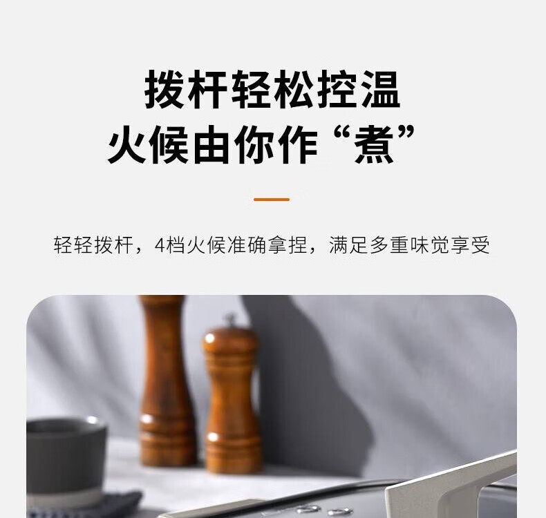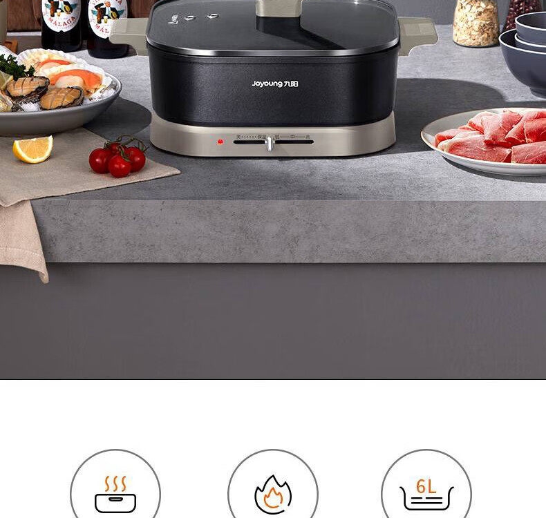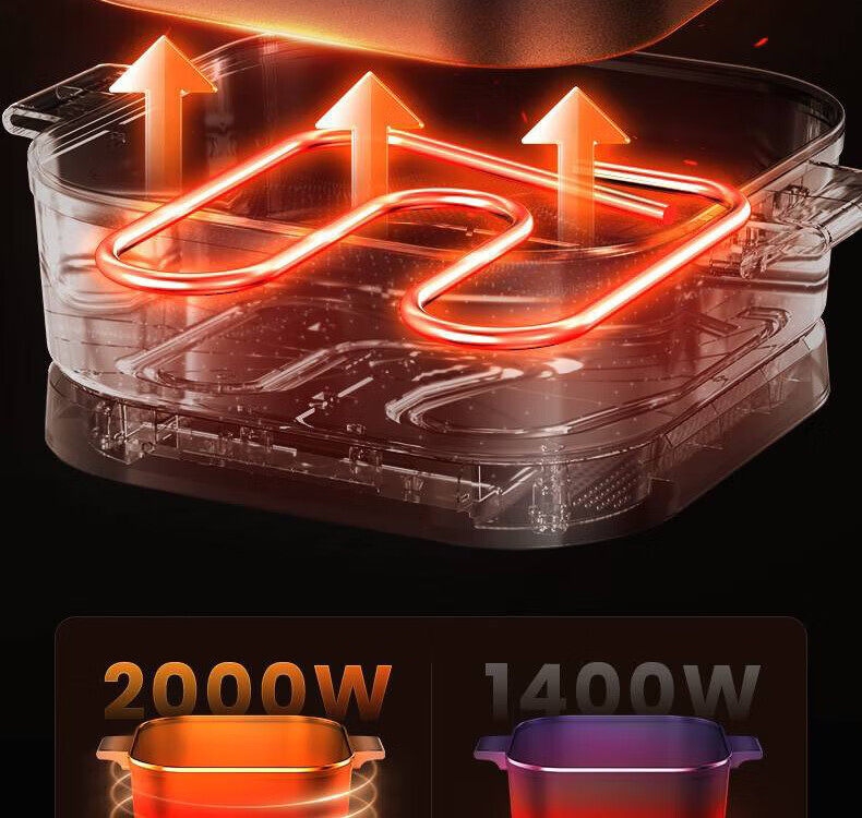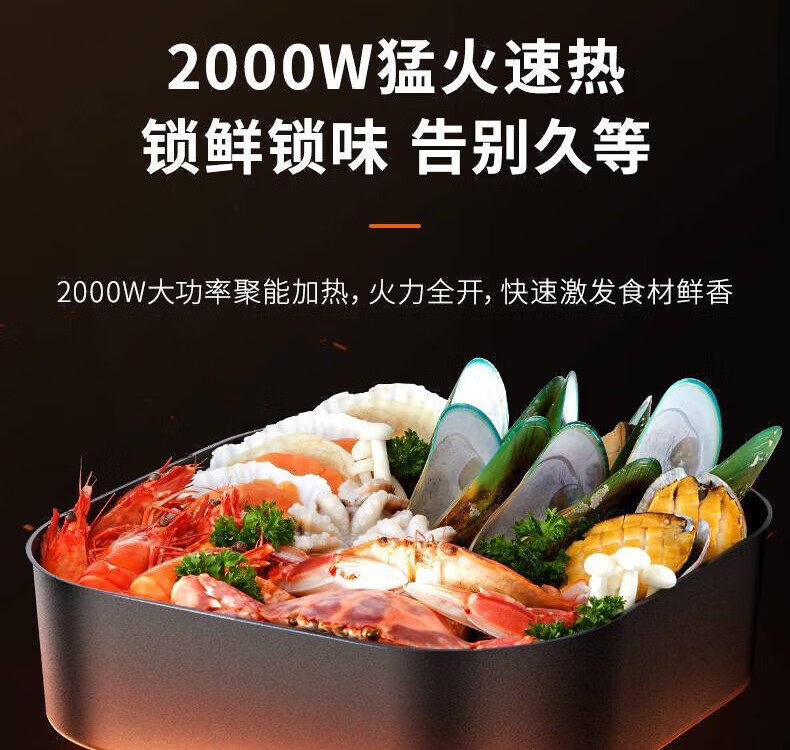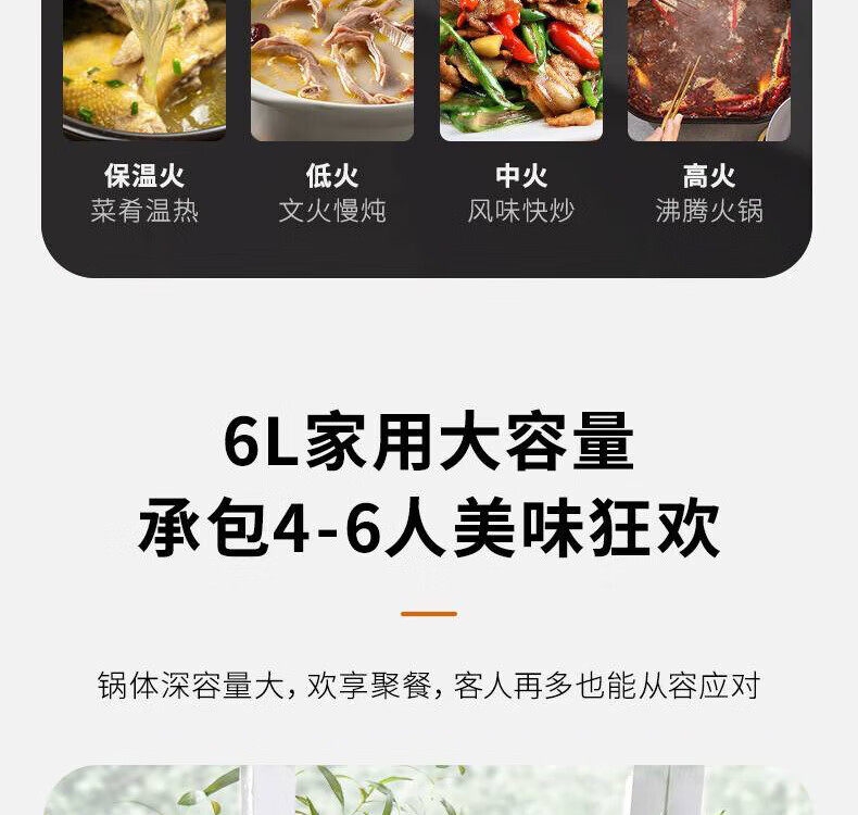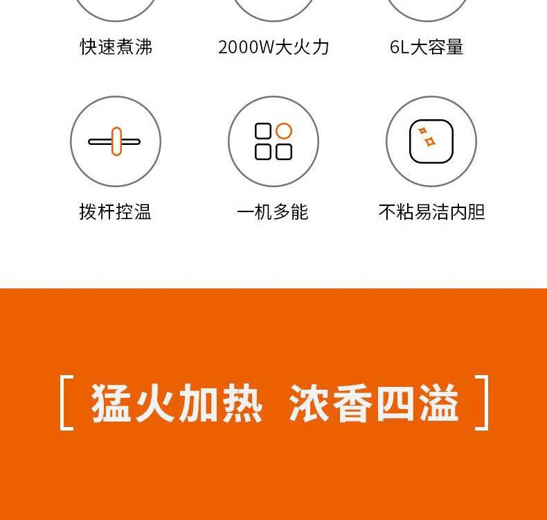 2000W大火力;6L大容量;不粘易洁内胆;拨杆控温;一机多能