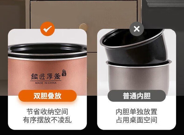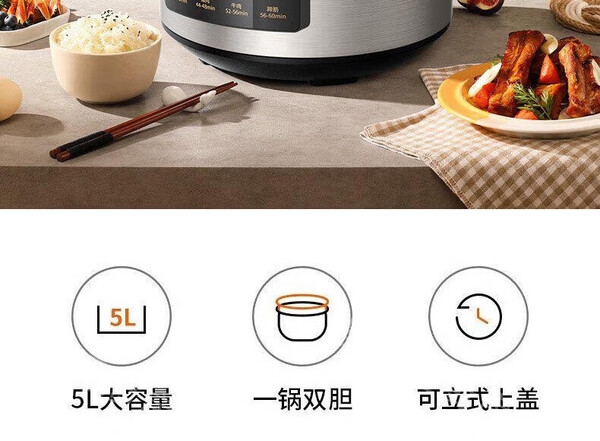 双胆可叠放,收纳更轻松;1000W猛火加热 释放食材深层营养;上盖侧插放置干净整洁省空间;开盖也能煮大火收汁入味快;便捷大屏操控10大功能菜单随心选