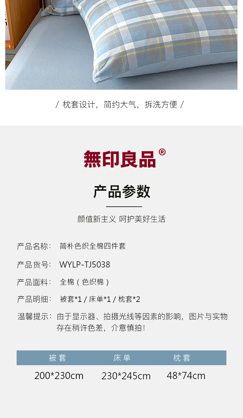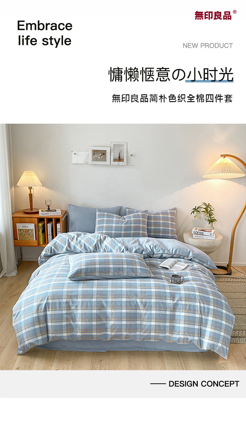 无印良品 無印良品简朴色织全棉四件套