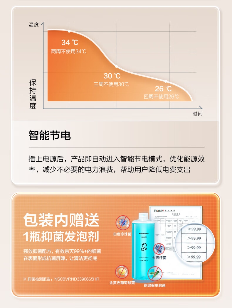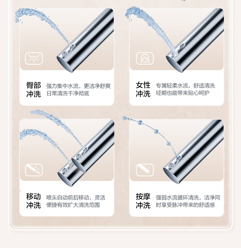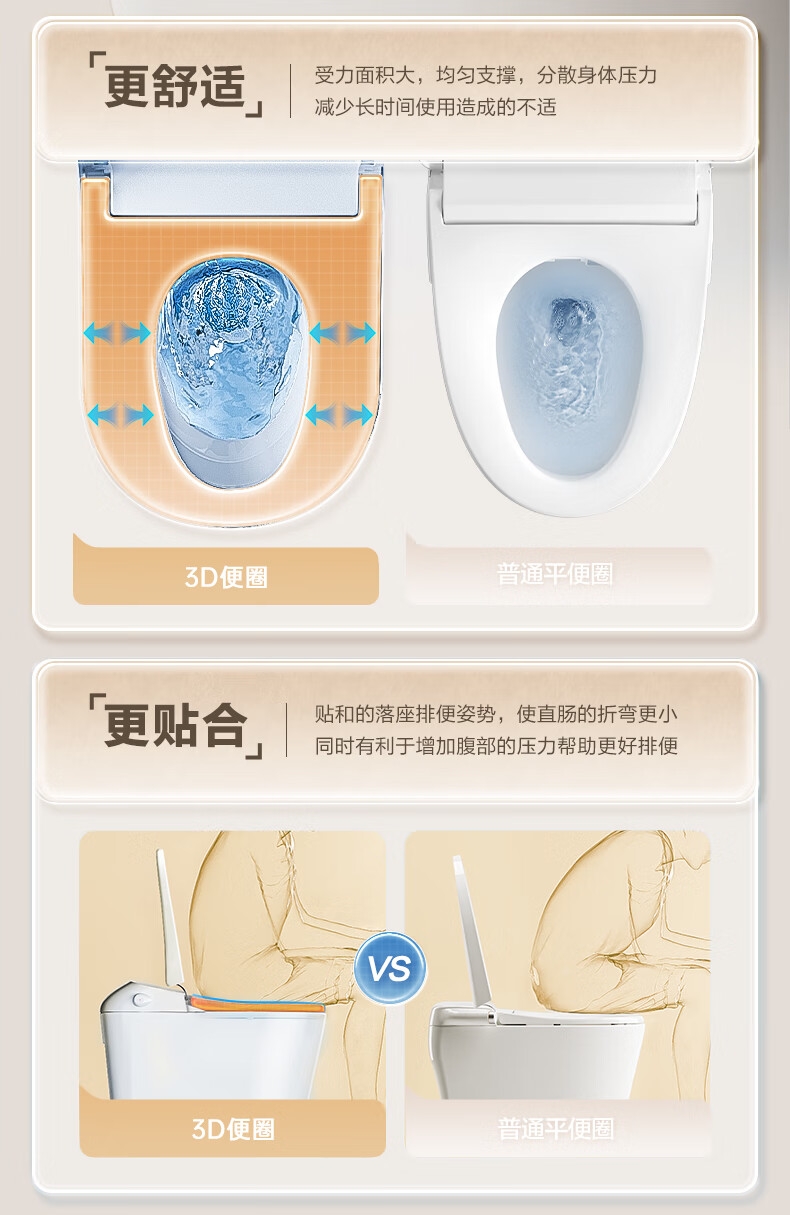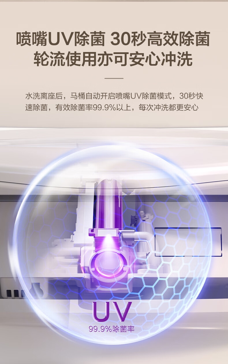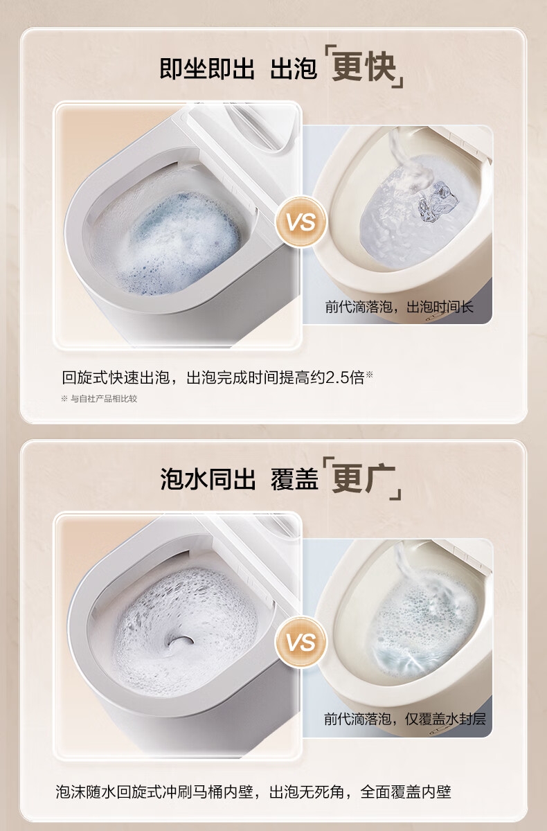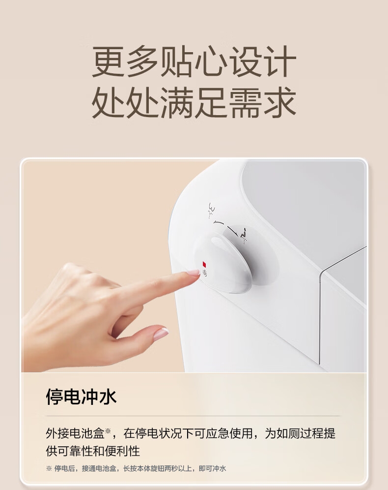 三档座圈加热+暖风烘干,四季舒适;泡沫盾防溅隔臭,如厕洁净无异味;脚感翻盖翻圈,全程免触更卫生;离座自动冲水,智能省心不遗忘;抗菌喷嘴+低水压适配,健康又实用