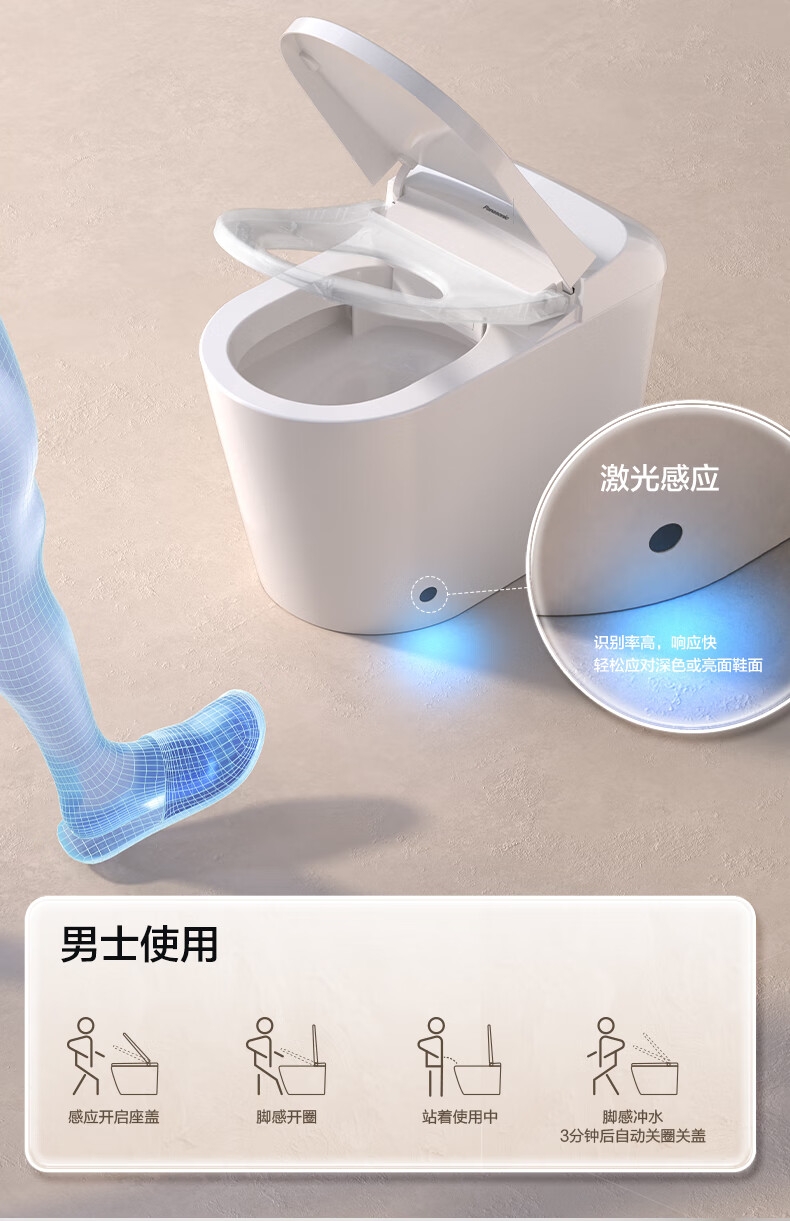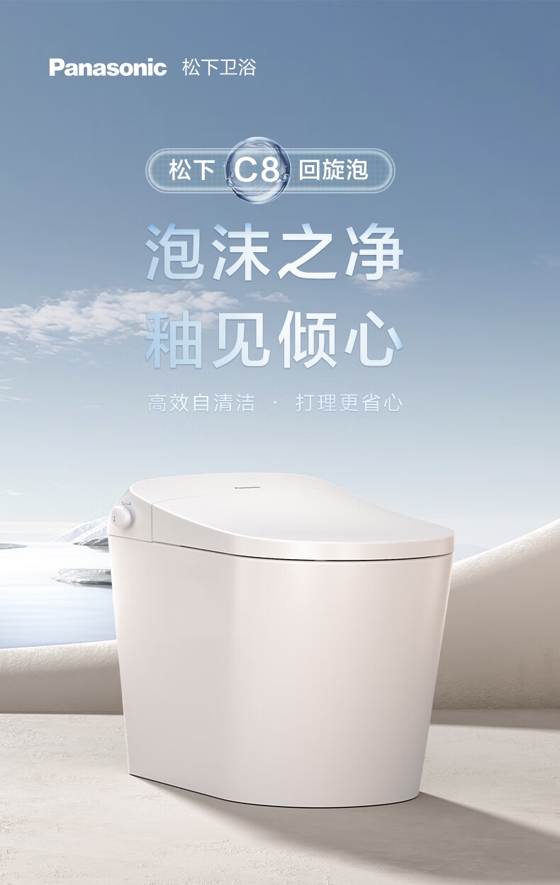 松下 智能马桶C8坐便器全自动脚感开闭冲水内置水箱无坑距限制回旋泡300/400mm